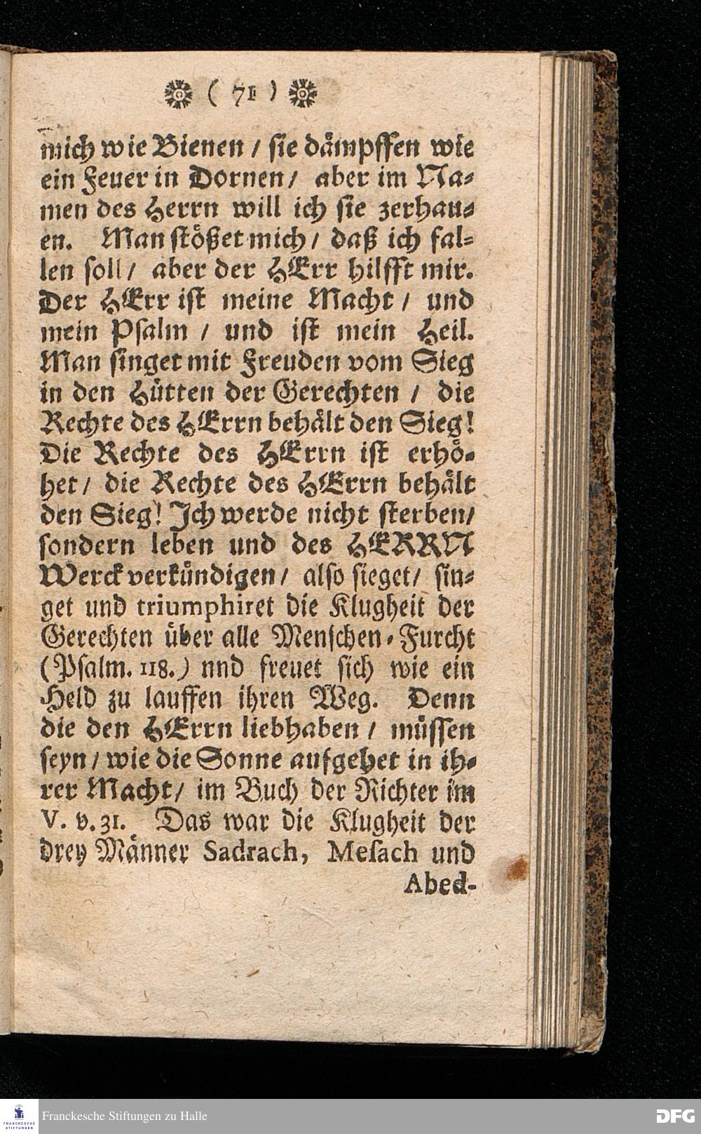NICODEMUS Oder Tractätlein von der Menschen=Furcht / Deren Beschreibung / Ursachen / Kennzeichen, Schaden, Bemäntelung, dagegen geordneten Mitteln, und wie zu einem freudigen Glauben zu gelangen, und derselbe weislich und nützlich zu gebrauchen, Zu Pflantzung Der wahren Furcht GOttes / In allen Ständen heilsam / besonders aber Dem Lehr=Stande dediciret von August Hermann Francken / SS.Th.Pr.O.& Past.zu St.Ulrich in Halle. vierte Edition. HALLE, gedruckt im Waysenhause MDCCXV.