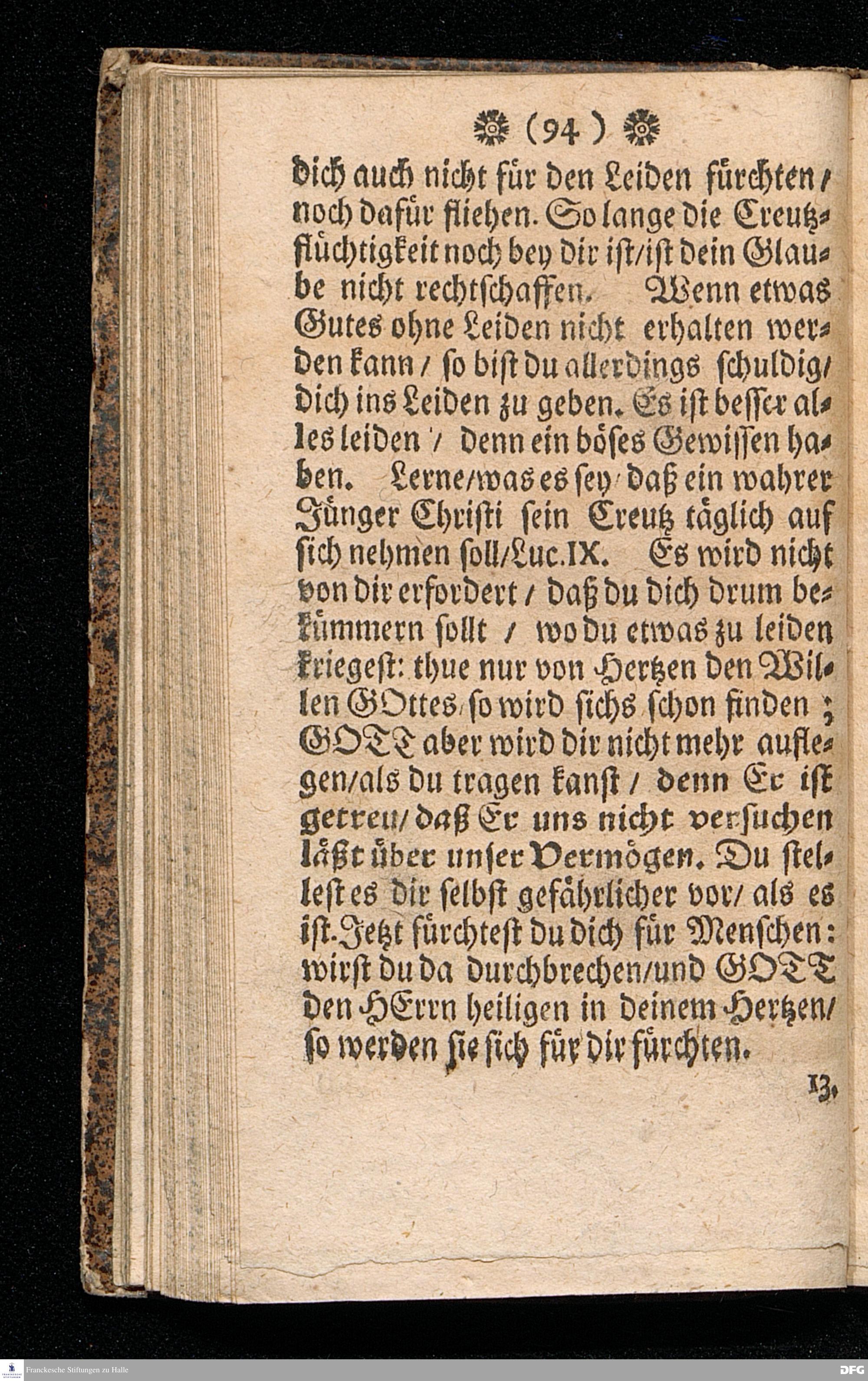 NICODEMUS Oder Tractätlein von der Menschen=Furcht / Deren Beschreibung / Ursachen / Kennzeichen, Schaden, Bemäntelung, dagegen geordneten Mitteln, und wie zu einem freudigen Glauben zu gelangen, und derselbe weislich und nützlich zu gebrauchen, Zu Pflantzung Der wahren Furcht GOttes / In allen Ständen heilsam / besonders aber Dem Lehr=Stande dediciret von August Hermann Francken / SS.Th.Pr.O.& Past.zu St.Ulrich in Halle. vierte Edition. HALLE, gedruckt im Waysenhause MDCCXV.
