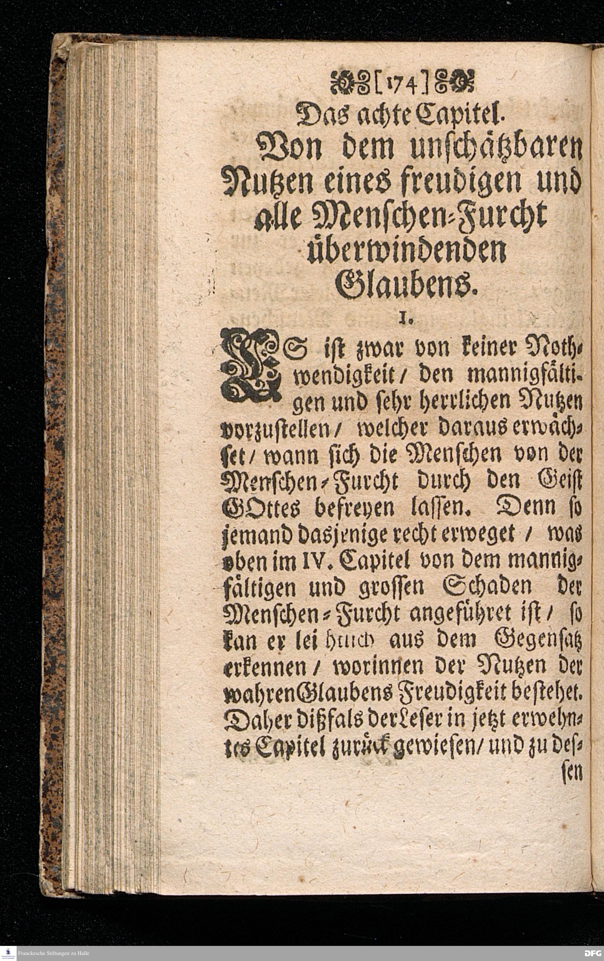 NICODEMUS Oder Tractätlein von der Menschen=Furcht / Deren Beschreibung / Ursachen / Kennzeichen, Schaden, Bemäntelung, dagegen geordneten Mitteln, und wie zu einem freudigen Glauben zu gelangen, und derselbe weislich und nützlich zu gebrauchen, Zu Pflantzung Der wahren Furcht GOttes / In allen Ständen heilsam / besonders aber Dem Lehr=Stande dediciret von August Hermann Francken / SS.Th.Pr.O.& Past.zu St.Ulrich in Halle. vierte Edition. HALLE, gedruckt im Waysenhause MDCCXV.