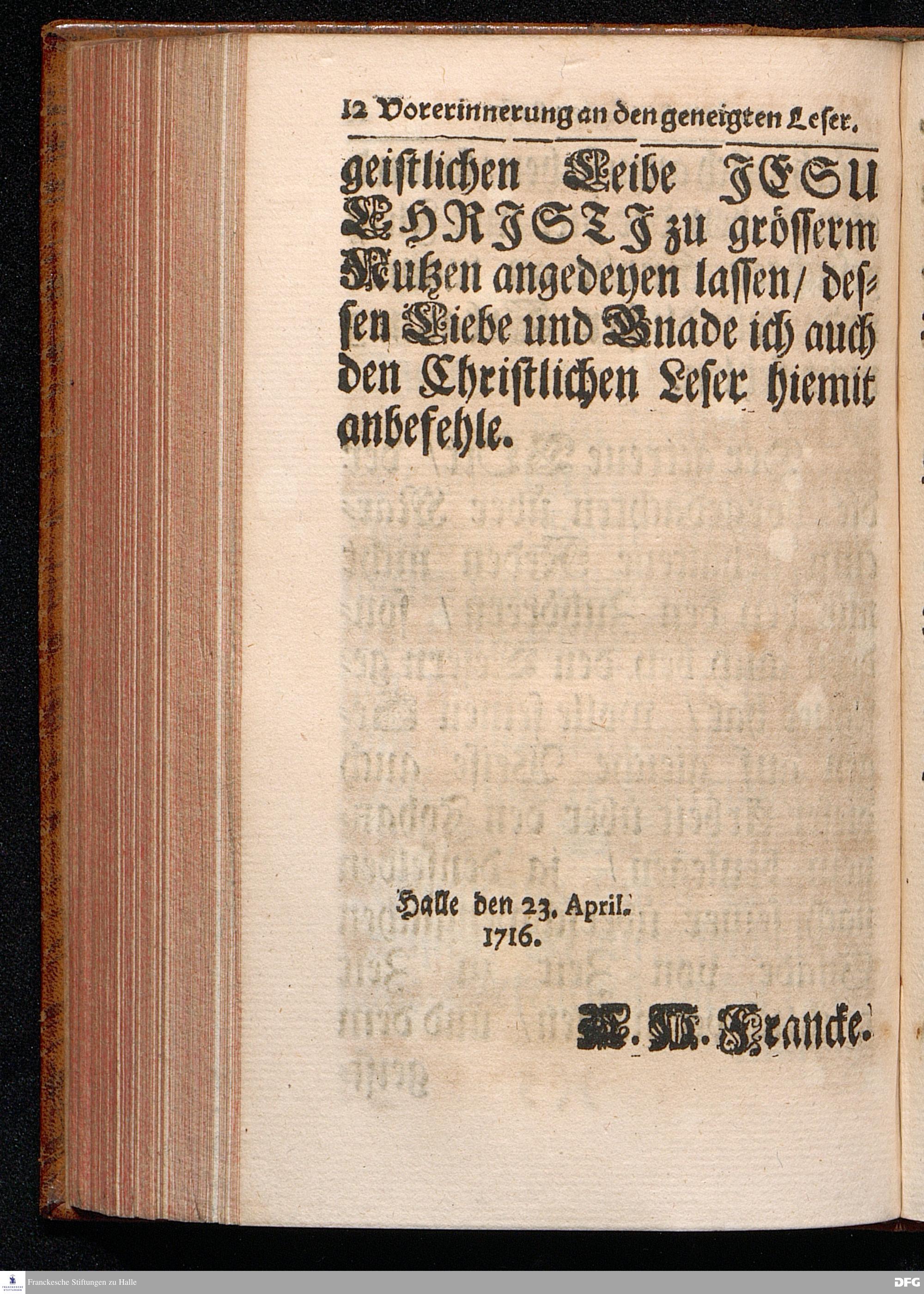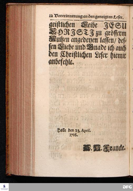 August Hermann Franckens / S.Theol.Prof.& Past.zu St.Ulrich und des Gymnasii Scholarchæ, Oeffentliche Reden über die Paßions=Historie, Wie dieselbe vom Evangelisten Johanne im 18.u.19. Capitel beschrieben ist, gehalten Von Esto mihi bis Ostern 1716. In dem Wäysenhause zu Glaucha an Halle. EDITIO III. HALLE, Gedruckt und verlegt im Wäysenhause, MDCCXXXIII.