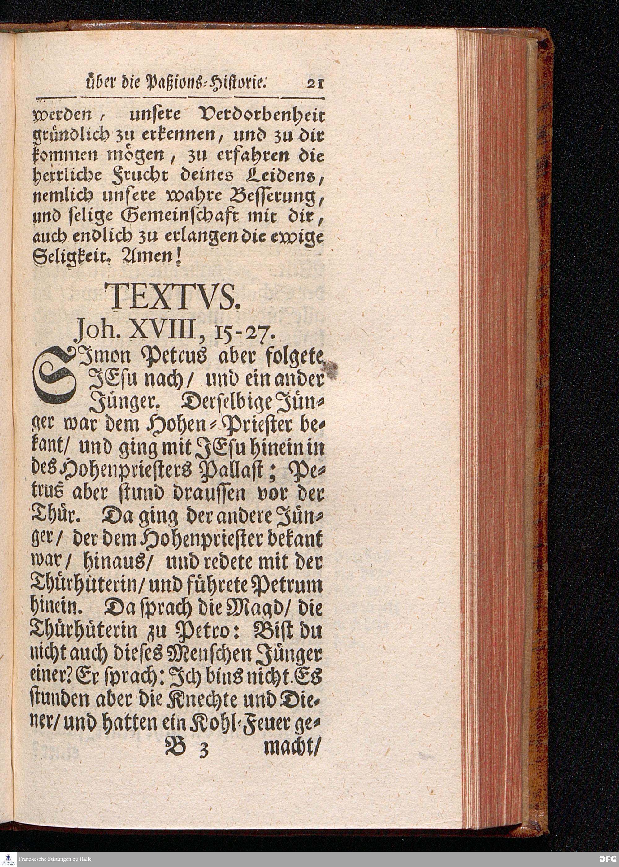 August Hermann Franckens / S.Theol.Prof.& Past.zu St.Ulrich und des Gymnasii Scholarchæ, Oeffentliche Reden über die Paßions=Historie, Wie dieselbe vom Evangelisten Johanne im 18.u.19. Capitel beschrieben ist, gehalten Von Esto mihi bis Ostern 1716. In dem Wäysenhause zu Glaucha an Halle. EDITIO III. HALLE, Gedruckt und verlegt im Wäysenhause, MDCCXXXIII.