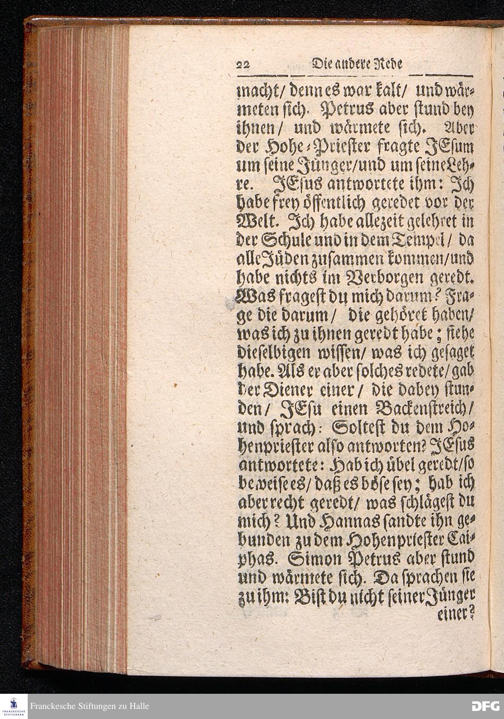 August Hermann Franckens / S.Theol.Prof.& Past.zu St.Ulrich und des Gymnasii Scholarchæ, Oeffentliche Reden über die Paßions=Historie, Wie dieselbe vom Evangelisten Johanne im 18.u.19. Capitel beschrieben ist, gehalten Von Esto mihi bis Ostern 1716. In dem Wäysenhause zu Glaucha an Halle. EDITIO III. HALLE, Gedruckt und verlegt im Wäysenhause, MDCCXXXIII.