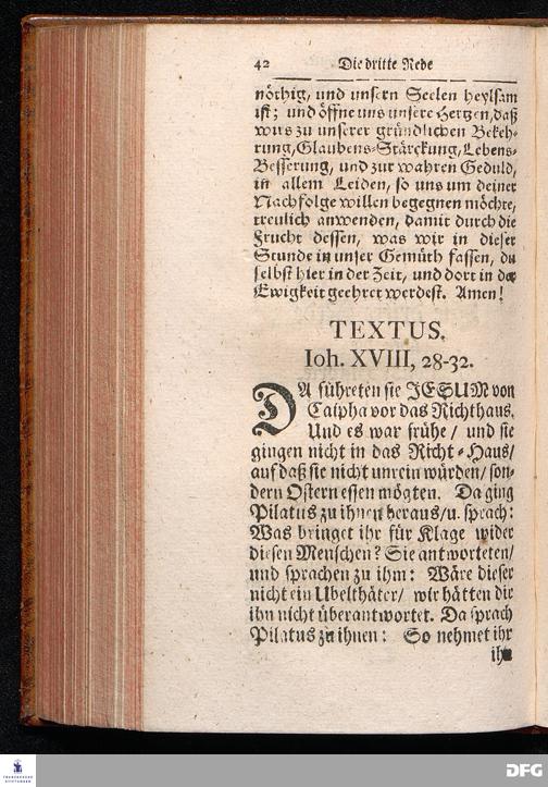 August Hermann Franckens / S.Theol.Prof.& Past.zu St.Ulrich und des Gymnasii Scholarchæ, Oeffentliche Reden über die Paßions=Historie, Wie dieselbe vom Evangelisten Johanne im 18.u.19. Capitel beschrieben ist, gehalten Von Esto mihi bis Ostern 1716. In dem Wäysenhause zu Glaucha an Halle. EDITIO III. HALLE, Gedruckt und verlegt im Wäysenhause, MDCCXXXIII.
