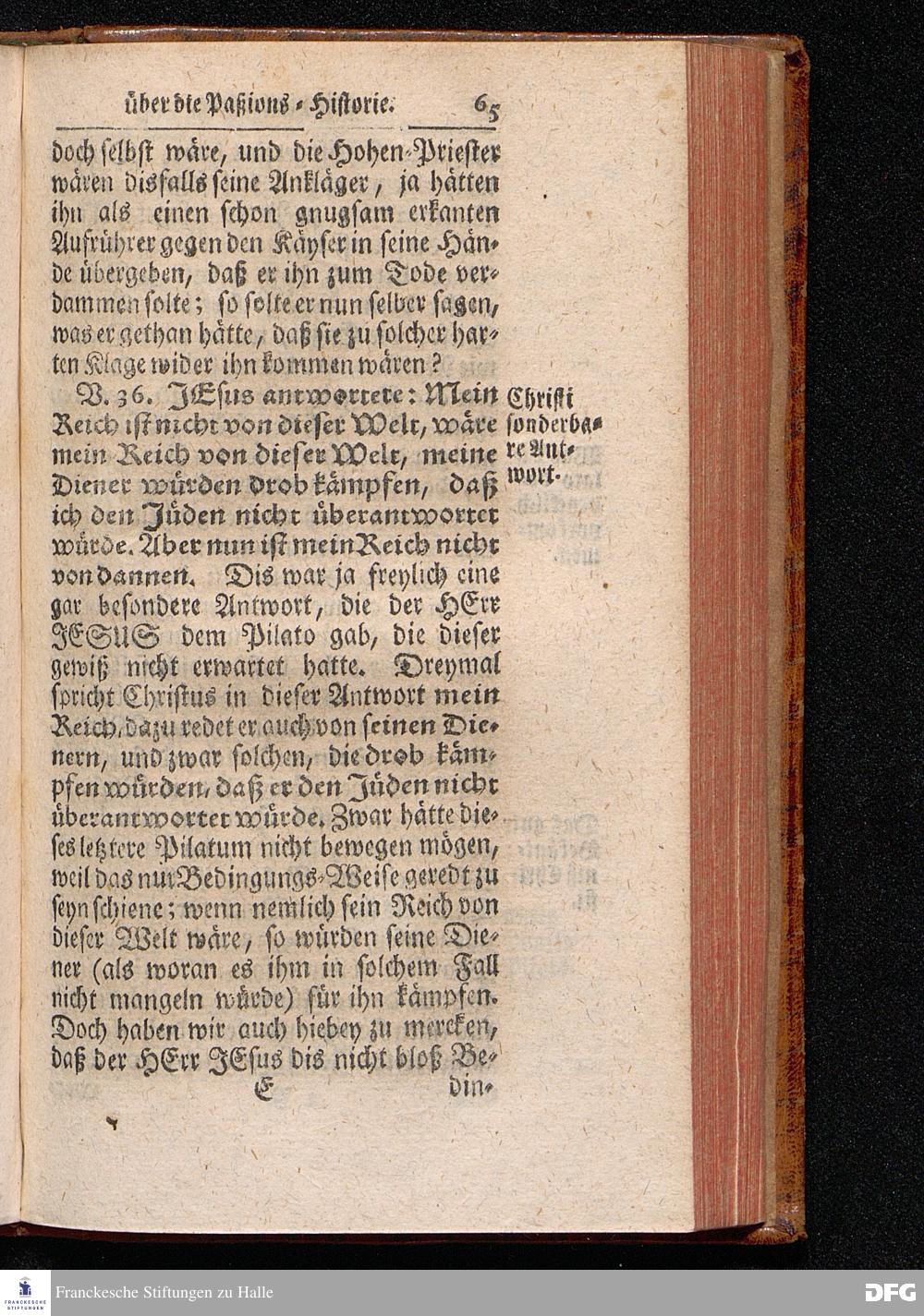 August Hermann Franckens / S.Theol.Prof.& Past.zu St.Ulrich und des Gymnasii Scholarchæ, Oeffentliche Reden über die Paßions=Historie, Wie dieselbe vom Evangelisten Johanne im 18.u.19. Capitel beschrieben ist, gehalten Von Esto mihi bis Ostern 1716. In dem Wäysenhause zu Glaucha an Halle. EDITIO III. HALLE, Gedruckt und verlegt im Wäysenhause, MDCCXXXIII.