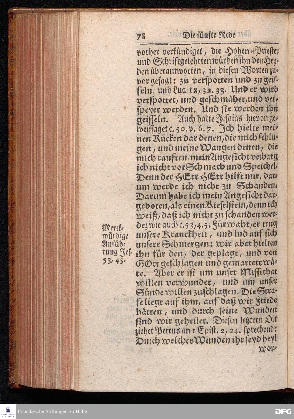 August Hermann Franckens / S.Theol.Prof.& Past.zu St.Ulrich und des Gymnasii Scholarchæ, Oeffentliche Reden über die Paßions=Historie, Wie dieselbe vom Evangelisten Johanne im 18.u.19. Capitel beschrieben ist, gehalten Von Esto mihi bis Ostern 1716. In dem Wäysenhause zu Glaucha an Halle. EDITIO III. HALLE, Gedruckt und verlegt im Wäysenhause, MDCCXXXIII.