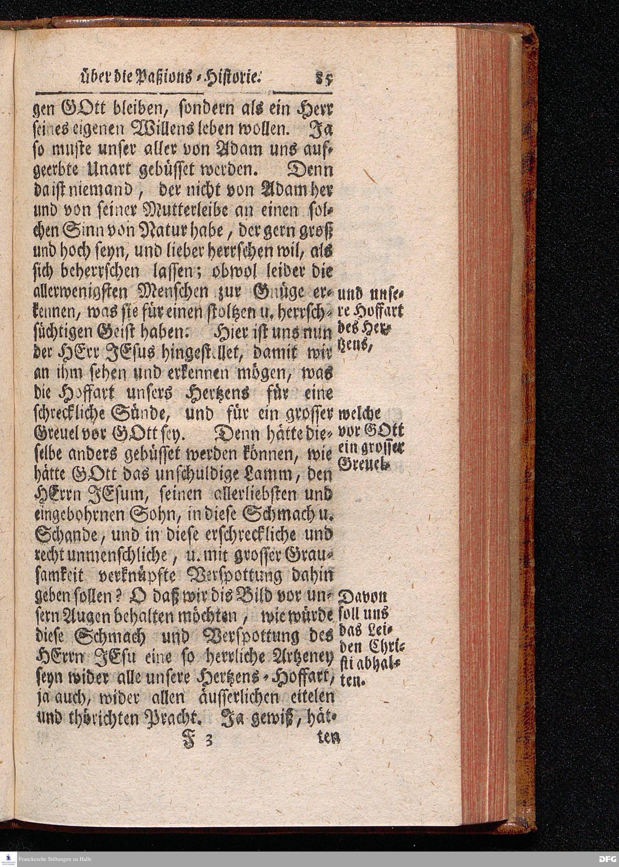 August Hermann Franckens / S.Theol.Prof.& Past.zu St.Ulrich und des Gymnasii Scholarchæ, Oeffentliche Reden über die Paßions=Historie, Wie dieselbe vom Evangelisten Johanne im 18.u.19. Capitel beschrieben ist, gehalten Von Esto mihi bis Ostern 1716. In dem Wäysenhause zu Glaucha an Halle. EDITIO III. HALLE, Gedruckt und verlegt im Wäysenhause, MDCCXXXIII.