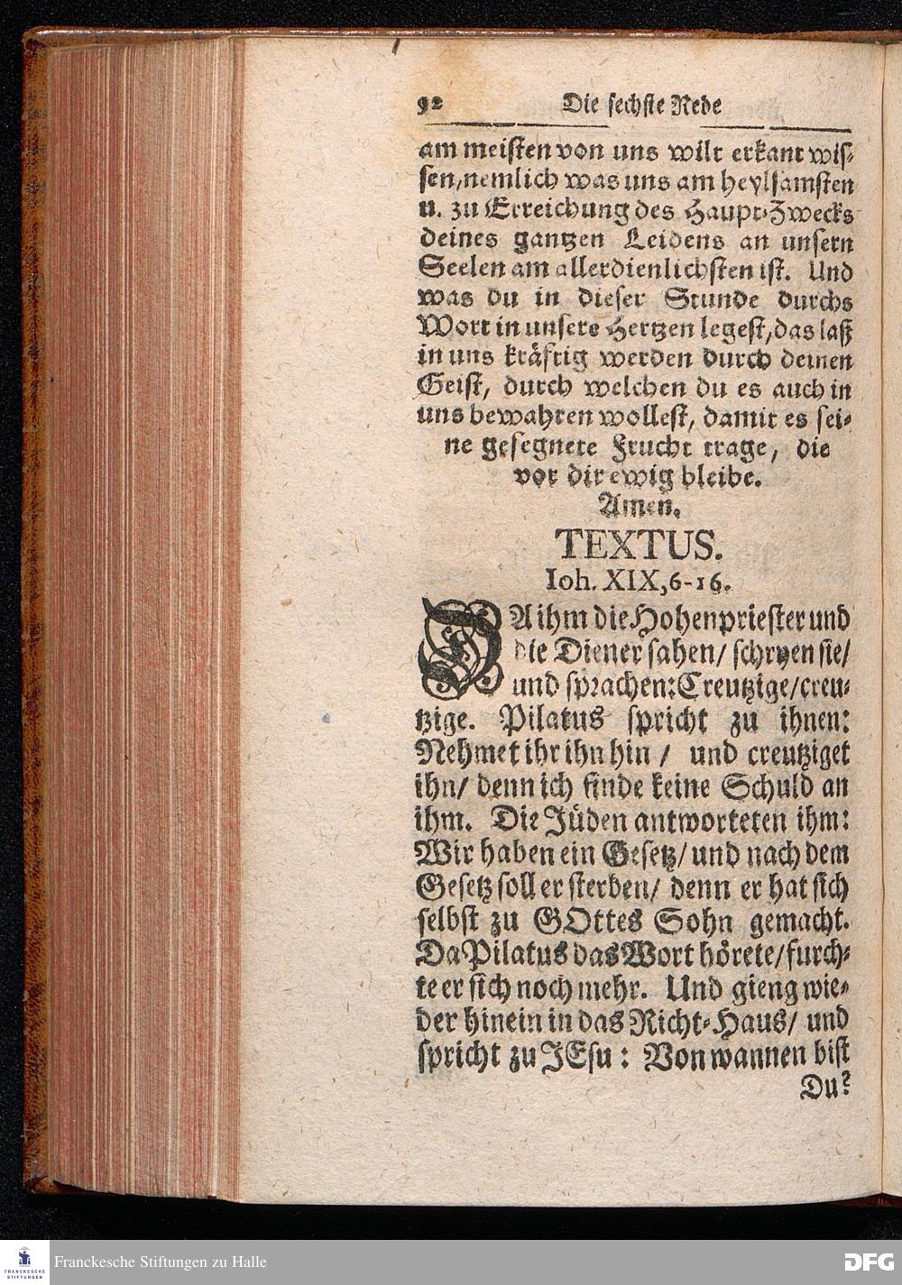 August Hermann Franckens / S.Theol.Prof.& Past.zu St.Ulrich und des Gymnasii Scholarchæ, Oeffentliche Reden über die Paßions=Historie, Wie dieselbe vom Evangelisten Johanne im 18.u.19. Capitel beschrieben ist, gehalten Von Esto mihi bis Ostern 1716. In dem Wäysenhause zu Glaucha an Halle. EDITIO III. HALLE, Gedruckt und verlegt im Wäysenhause, MDCCXXXIII.