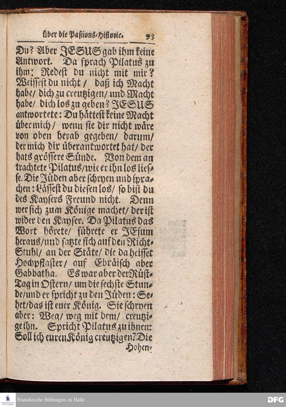 August Hermann Franckens / S.Theol.Prof.& Past.zu St.Ulrich und des Gymnasii Scholarchæ, Oeffentliche Reden über die Paßions=Historie, Wie dieselbe vom Evangelisten Johanne im 18.u.19. Capitel beschrieben ist, gehalten Von Esto mihi bis Ostern 1716. In dem Wäysenhause zu Glaucha an Halle. EDITIO III. HALLE, Gedruckt und verlegt im Wäysenhause, MDCCXXXIII.