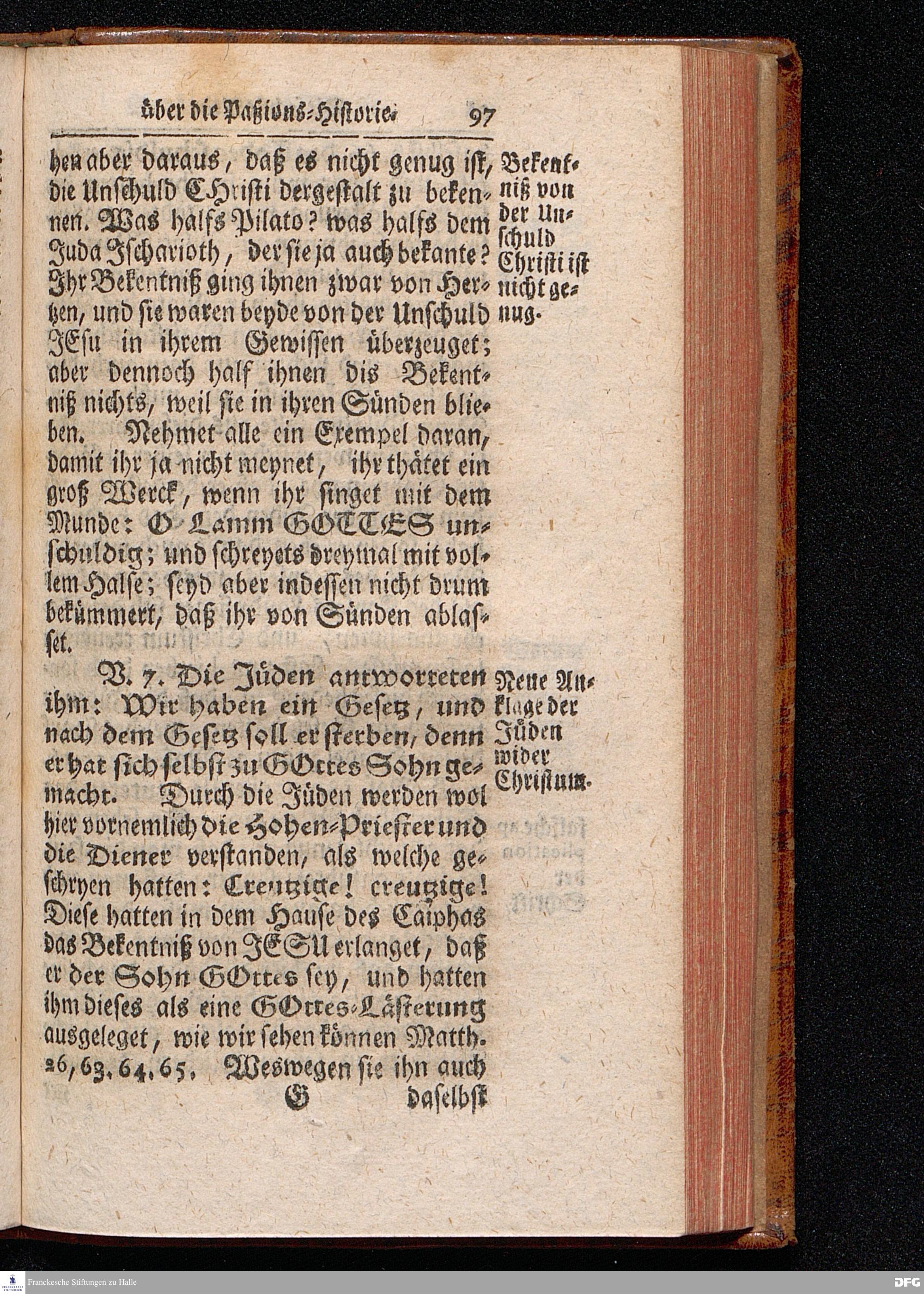 August Hermann Franckens / S.Theol.Prof.& Past.zu St.Ulrich und des Gymnasii Scholarchæ, Oeffentliche Reden über die Paßions=Historie, Wie dieselbe vom Evangelisten Johanne im 18.u.19. Capitel beschrieben ist, gehalten Von Esto mihi bis Ostern 1716. In dem Wäysenhause zu Glaucha an Halle. EDITIO III. HALLE, Gedruckt und verlegt im Wäysenhause, MDCCXXXIII.