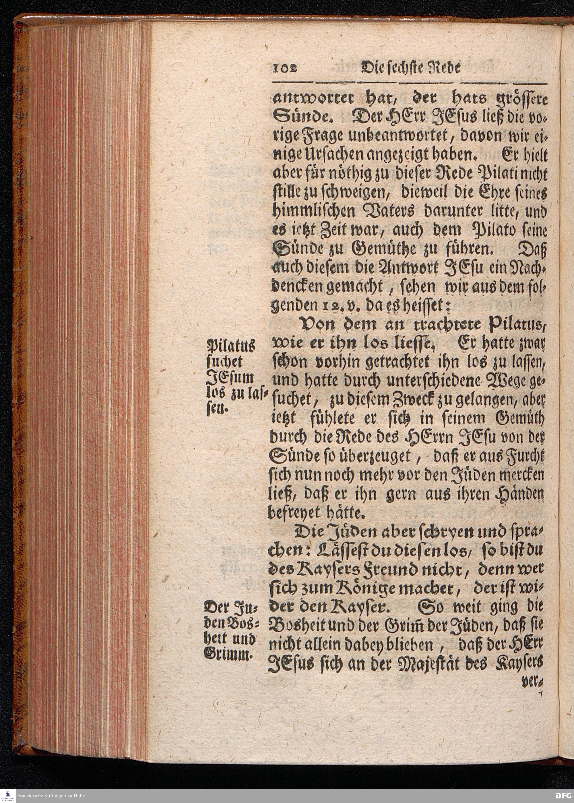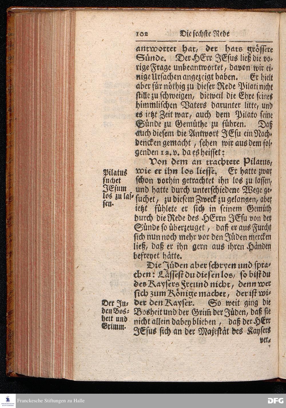 August Hermann Franckens / S.Theol.Prof.& Past.zu St.Ulrich und des Gymnasii Scholarchæ, Oeffentliche Reden über die Paßions=Historie, Wie dieselbe vom Evangelisten Johanne im 18.u.19. Capitel beschrieben ist, gehalten Von Esto mihi bis Ostern 1716. In dem Wäysenhause zu Glaucha an Halle. EDITIO III. HALLE, Gedruckt und verlegt im Wäysenhause, MDCCXXXIII.