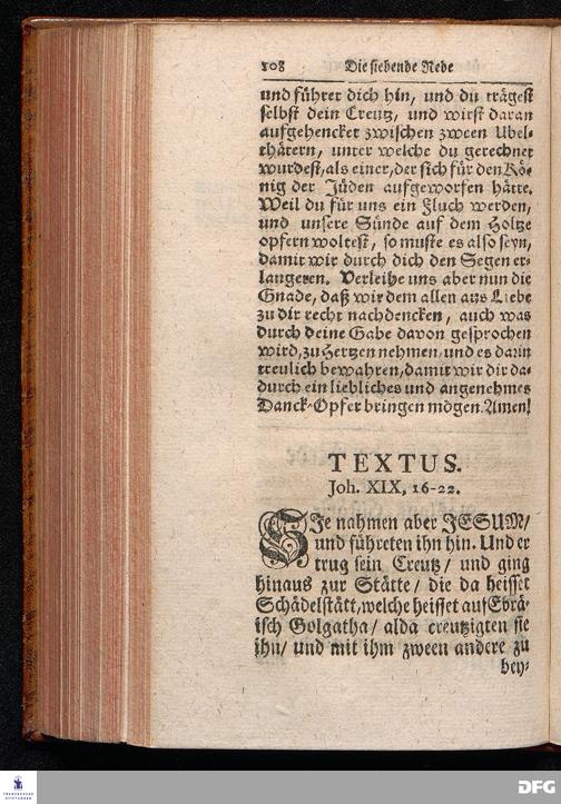 August Hermann Franckens / S.Theol.Prof.& Past.zu St.Ulrich und des Gymnasii Scholarchæ, Oeffentliche Reden über die Paßions=Historie, Wie dieselbe vom Evangelisten Johanne im 18.u.19. Capitel beschrieben ist, gehalten Von Esto mihi bis Ostern 1716. In dem Wäysenhause zu Glaucha an Halle. EDITIO III. HALLE, Gedruckt und verlegt im Wäysenhause, MDCCXXXIII.