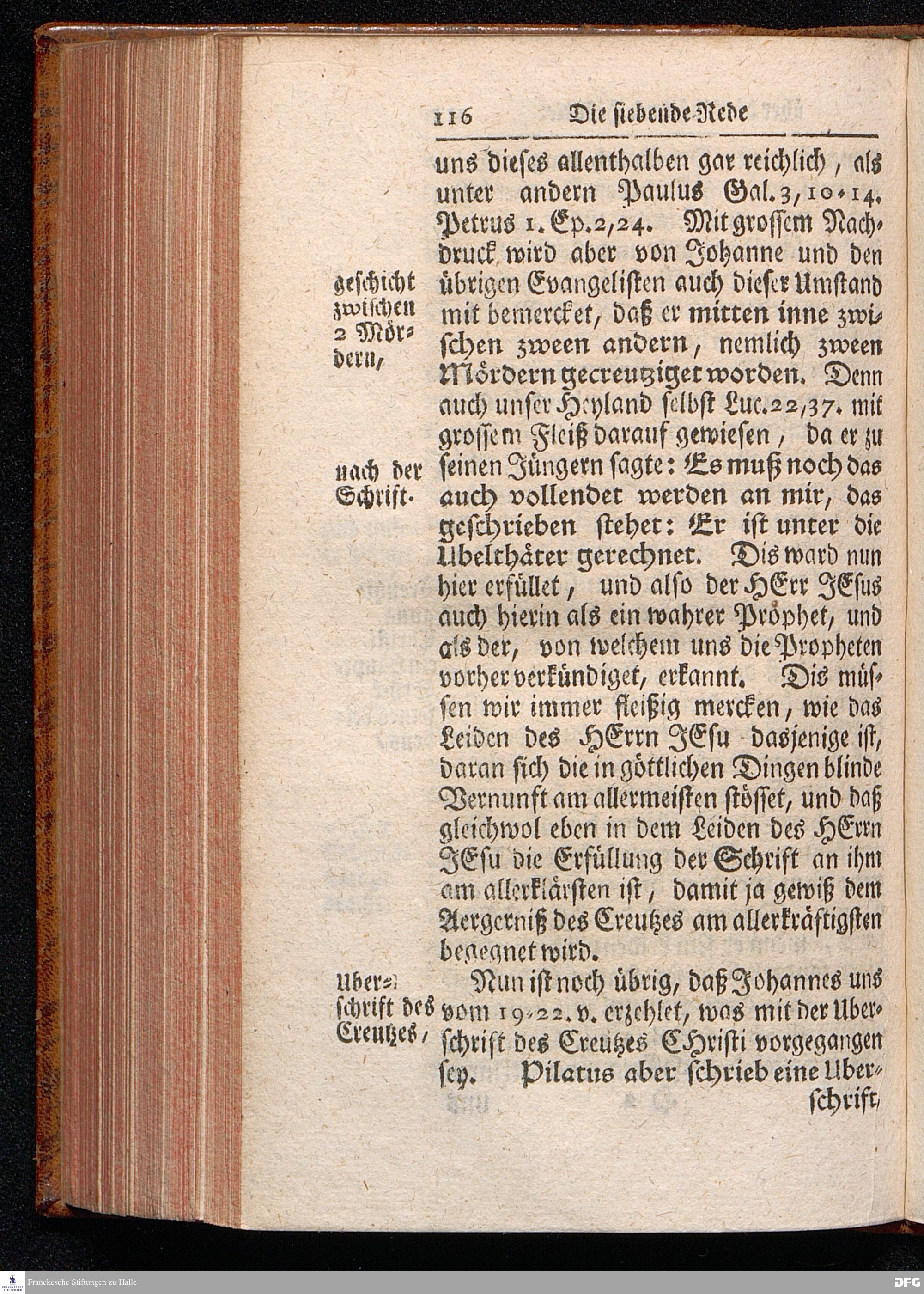 August Hermann Franckens / S.Theol.Prof.& Past.zu St.Ulrich und des Gymnasii Scholarchæ, Oeffentliche Reden über die Paßions=Historie, Wie dieselbe vom Evangelisten Johanne im 18.u.19. Capitel beschrieben ist, gehalten Von Esto mihi bis Ostern 1716. In dem Wäysenhause zu Glaucha an Halle. EDITIO III. HALLE, Gedruckt und verlegt im Wäysenhause, MDCCXXXIII.