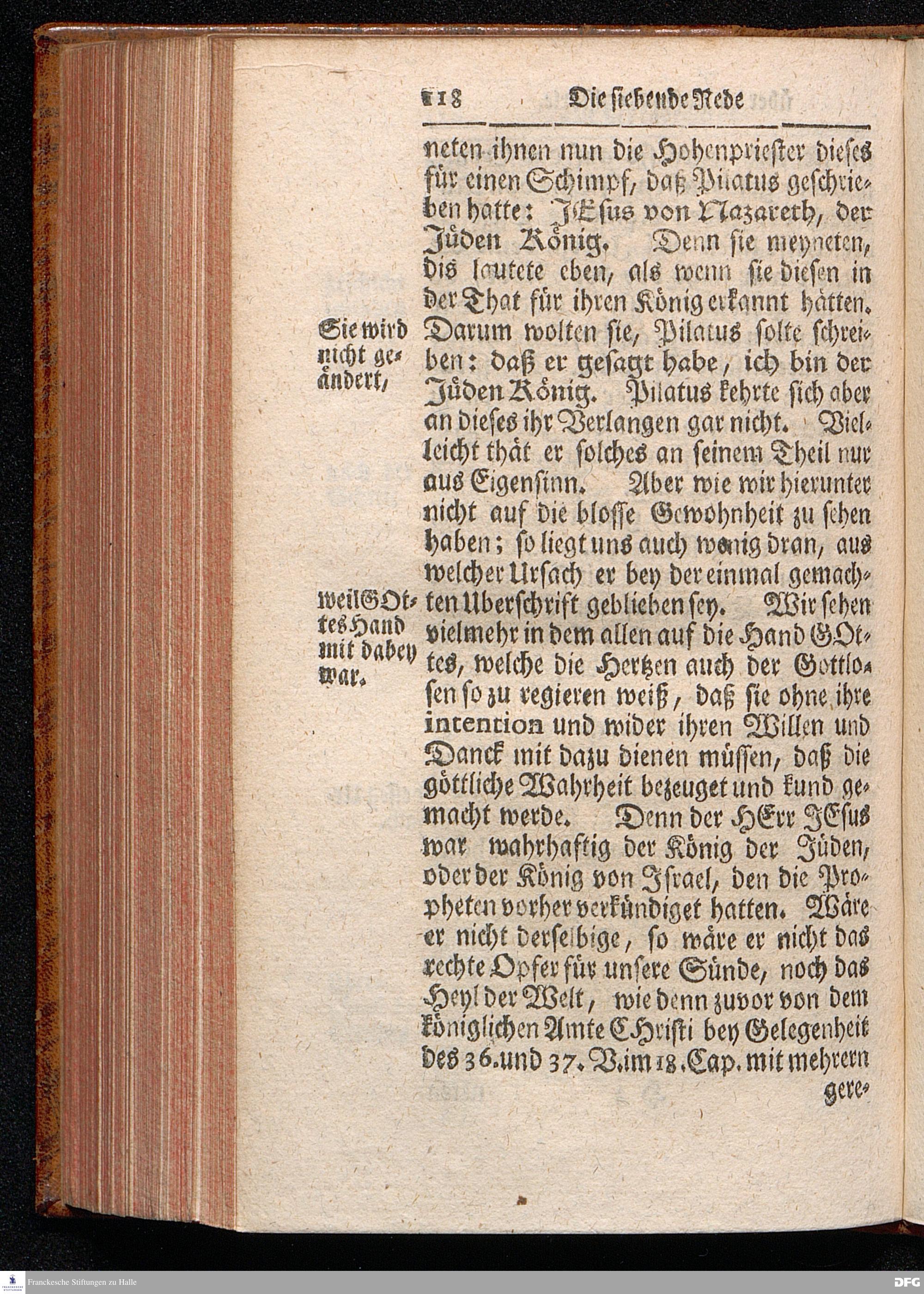 August Hermann Franckens / S.Theol.Prof.& Past.zu St.Ulrich und des Gymnasii Scholarchæ, Oeffentliche Reden über die Paßions=Historie, Wie dieselbe vom Evangelisten Johanne im 18.u.19. Capitel beschrieben ist, gehalten Von Esto mihi bis Ostern 1716. In dem Wäysenhause zu Glaucha an Halle. EDITIO III. HALLE, Gedruckt und verlegt im Wäysenhause, MDCCXXXIII.