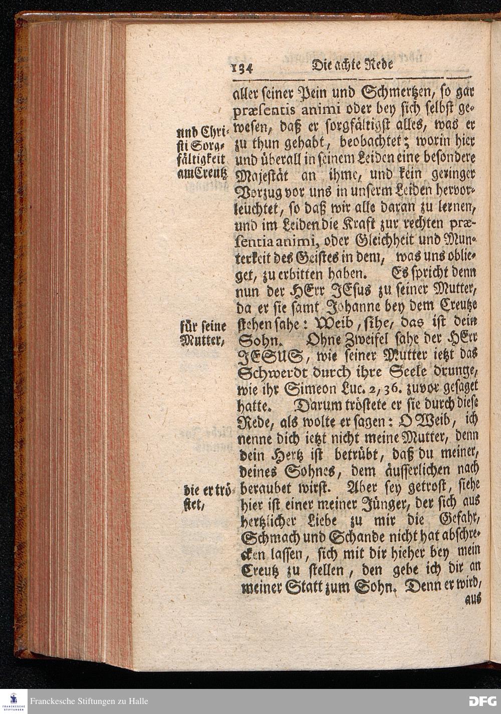 August Hermann Franckens / S.Theol.Prof.& Past.zu St.Ulrich und des Gymnasii Scholarchæ, Oeffentliche Reden über die Paßions=Historie, Wie dieselbe vom Evangelisten Johanne im 18.u.19. Capitel beschrieben ist, gehalten Von Esto mihi bis Ostern 1716. In dem Wäysenhause zu Glaucha an Halle. EDITIO III. HALLE, Gedruckt und verlegt im Wäysenhause, MDCCXXXIII.