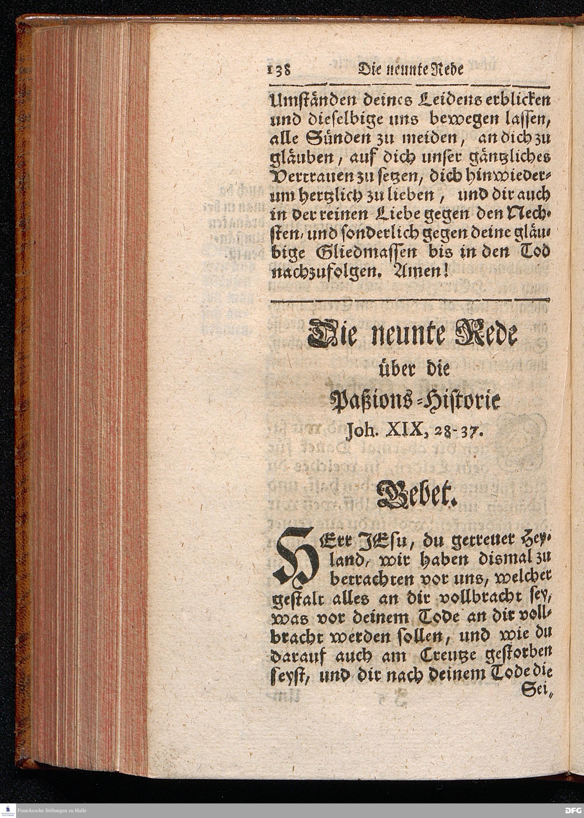 August Hermann Franckens / S.Theol.Prof.& Past.zu St.Ulrich und des Gymnasii Scholarchæ, Oeffentliche Reden über die Paßions=Historie, Wie dieselbe vom Evangelisten Johanne im 18.u.19. Capitel beschrieben ist, gehalten Von Esto mihi bis Ostern 1716. In dem Wäysenhause zu Glaucha an Halle. EDITIO III. HALLE, Gedruckt und verlegt im Wäysenhause, MDCCXXXIII.