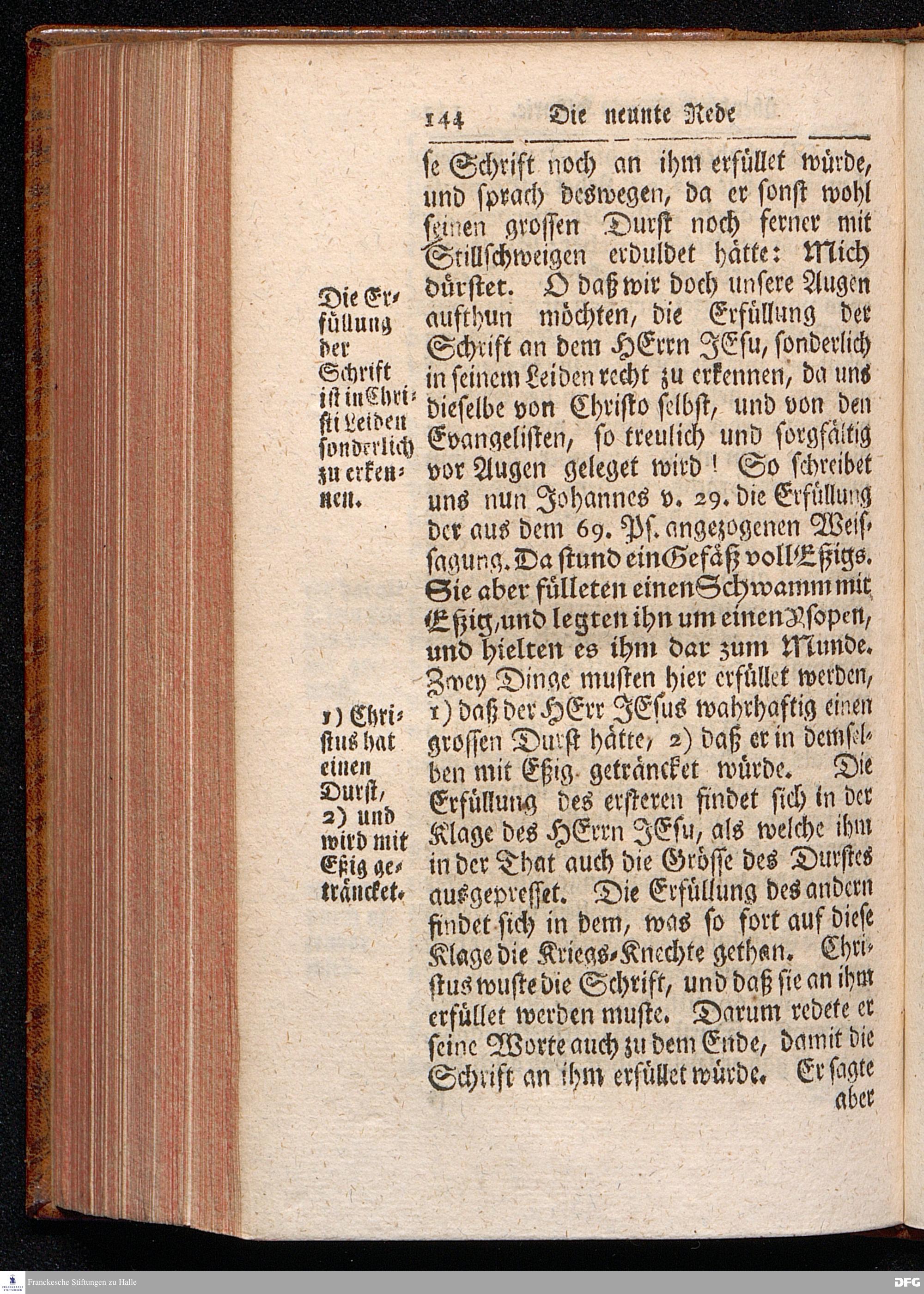 August Hermann Franckens / S.Theol.Prof.& Past.zu St.Ulrich und des Gymnasii Scholarchæ, Oeffentliche Reden über die Paßions=Historie, Wie dieselbe vom Evangelisten Johanne im 18.u.19. Capitel beschrieben ist, gehalten Von Esto mihi bis Ostern 1716. In dem Wäysenhause zu Glaucha an Halle. EDITIO III. HALLE, Gedruckt und verlegt im Wäysenhause, MDCCXXXIII.