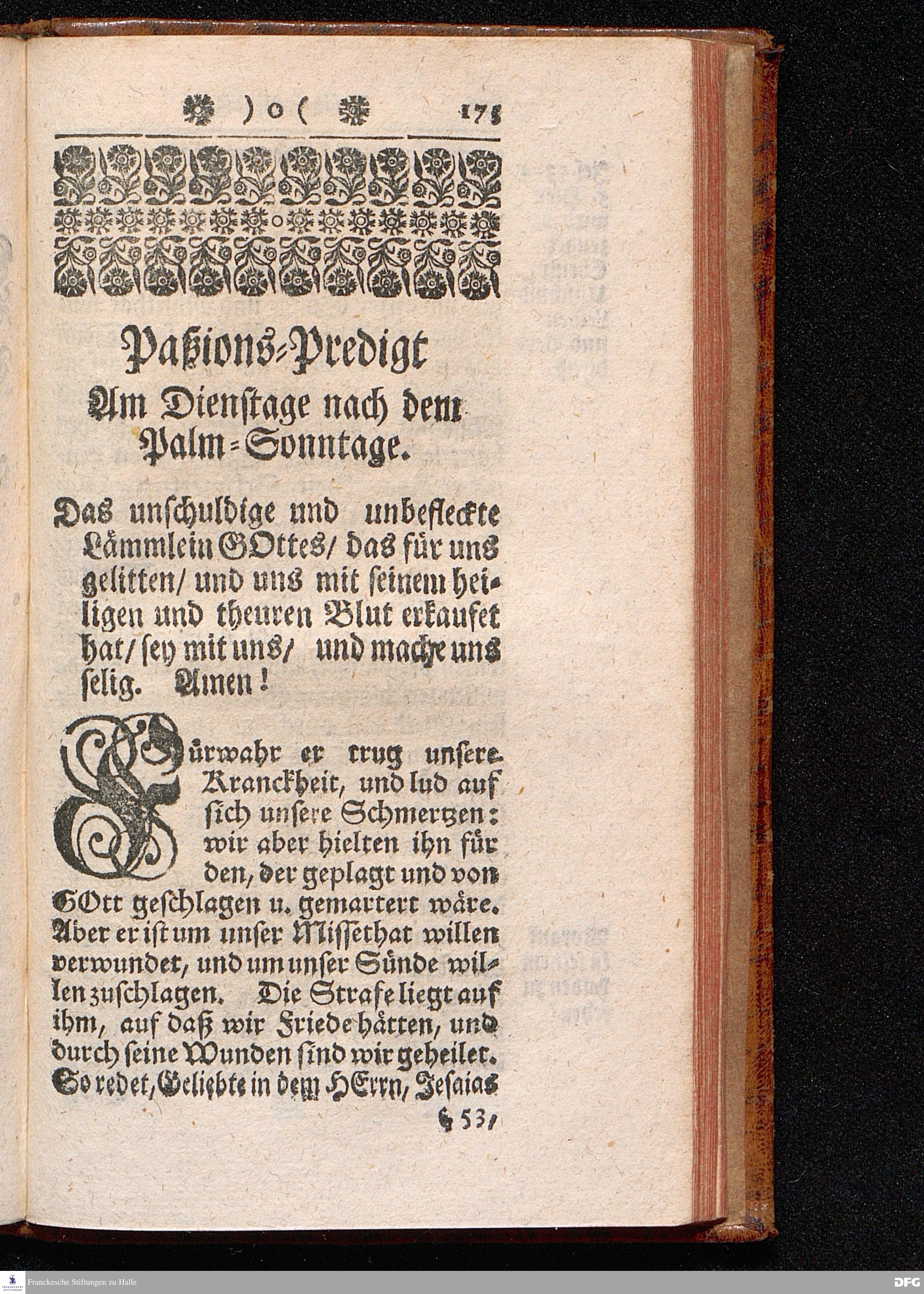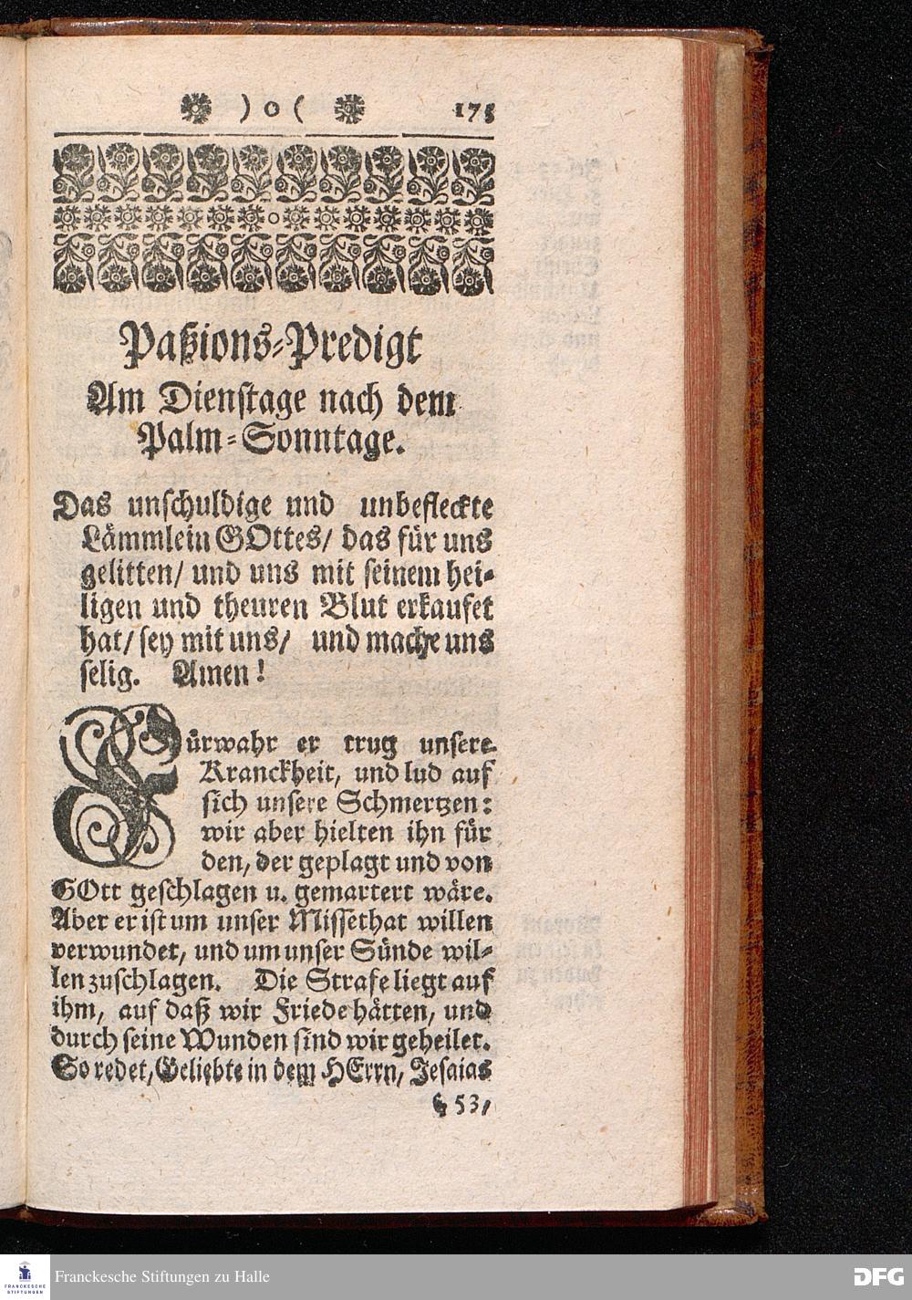 August Hermann Franckens / S.Theol.Prof.& Past.zu St.Ulrich und des Gymnasii Scholarchæ, Oeffentliche Reden über die Paßions=Historie, Wie dieselbe vom Evangelisten Johanne im 18.u.19. Capitel beschrieben ist, gehalten Von Esto mihi bis Ostern 1716. In dem Wäysenhause zu Glaucha an Halle. EDITIO III. HALLE, Gedruckt und verlegt im Wäysenhause, MDCCXXXIII.