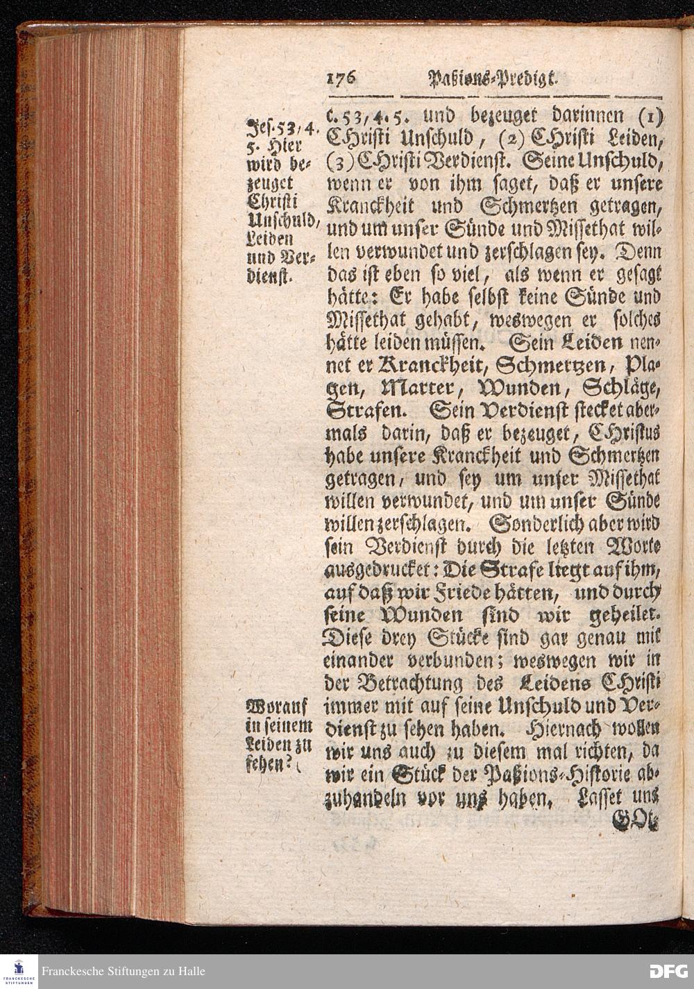 August Hermann Franckens / S.Theol.Prof.& Past.zu St.Ulrich und des Gymnasii Scholarchæ, Oeffentliche Reden über die Paßions=Historie, Wie dieselbe vom Evangelisten Johanne im 18.u.19. Capitel beschrieben ist, gehalten Von Esto mihi bis Ostern 1716. In dem Wäysenhause zu Glaucha an Halle. EDITIO III. HALLE, Gedruckt und verlegt im Wäysenhause, MDCCXXXIII.