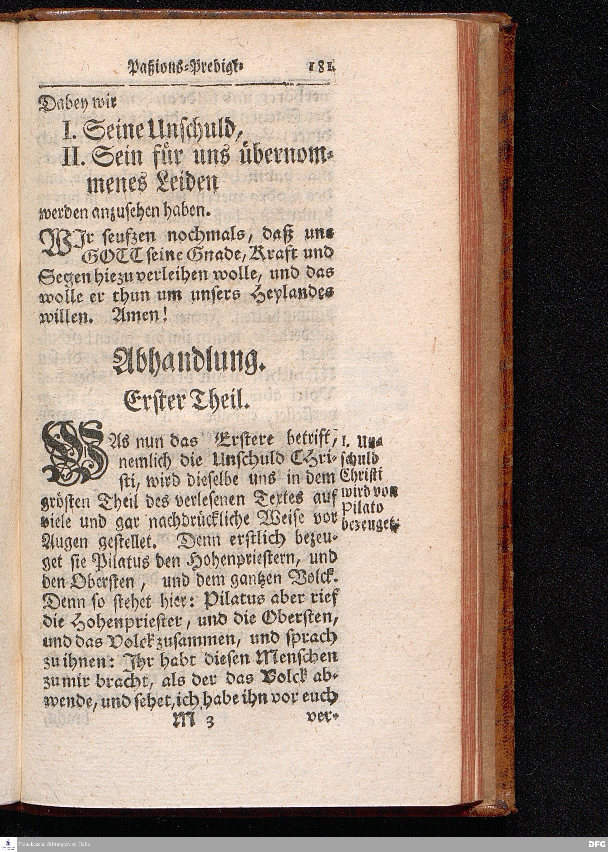 August Hermann Franckens / S.Theol.Prof.& Past.zu St.Ulrich und des Gymnasii Scholarchæ, Oeffentliche Reden über die Paßions=Historie, Wie dieselbe vom Evangelisten Johanne im 18.u.19. Capitel beschrieben ist, gehalten Von Esto mihi bis Ostern 1716. In dem Wäysenhause zu Glaucha an Halle. EDITIO III. HALLE, Gedruckt und verlegt im Wäysenhause, MDCCXXXIII.