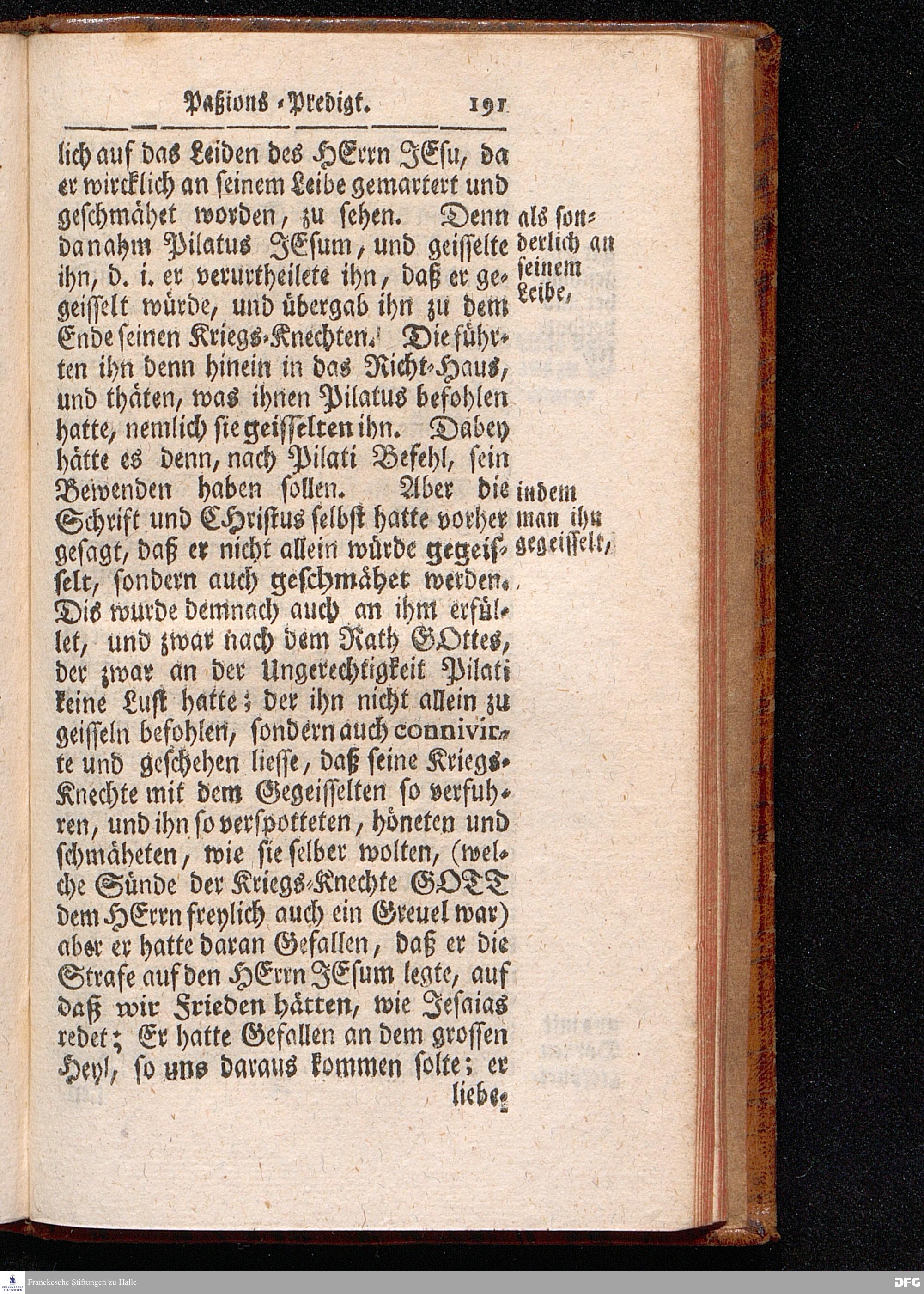 August Hermann Franckens / S.Theol.Prof.& Past.zu St.Ulrich und des Gymnasii Scholarchæ, Oeffentliche Reden über die Paßions=Historie, Wie dieselbe vom Evangelisten Johanne im 18.u.19. Capitel beschrieben ist, gehalten Von Esto mihi bis Ostern 1716. In dem Wäysenhause zu Glaucha an Halle. EDITIO III. HALLE, Gedruckt und verlegt im Wäysenhause, MDCCXXXIII.