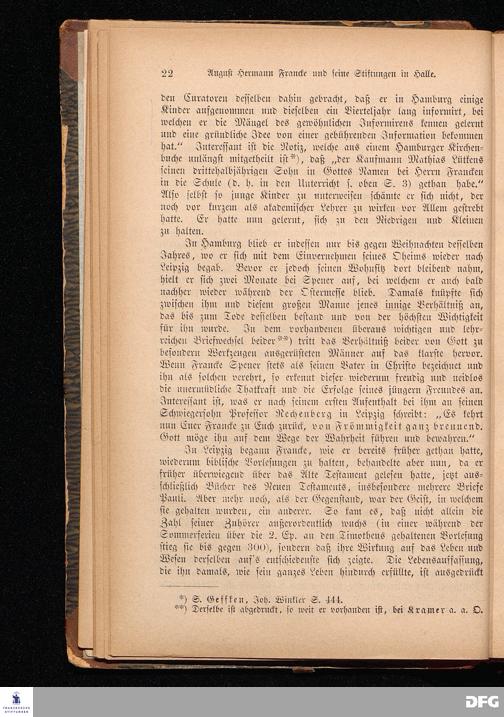 A.H.Francke's Pädagogische Schriften. Nebst der Darstellung seines Lebens und seiner Stiftungen herausgegeben von D. G[ustav] Kramer, Director der Franckeschen Stiftungen. Langensalza, Verlags=Comptoir von Hermann Beyer. 1876.