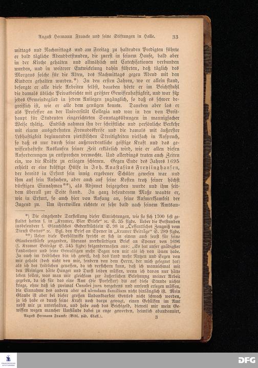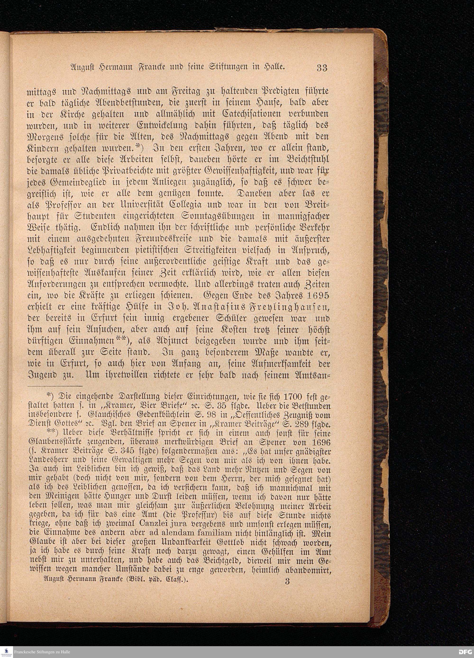 A.H.Francke's Pädagogische Schriften. Nebst der Darstellung seines Lebens und seiner Stiftungen herausgegeben von D. G[ustav] Kramer, Director der Franckeschen Stiftungen. Langensalza, Verlags=Comptoir von Hermann Beyer. 1876.