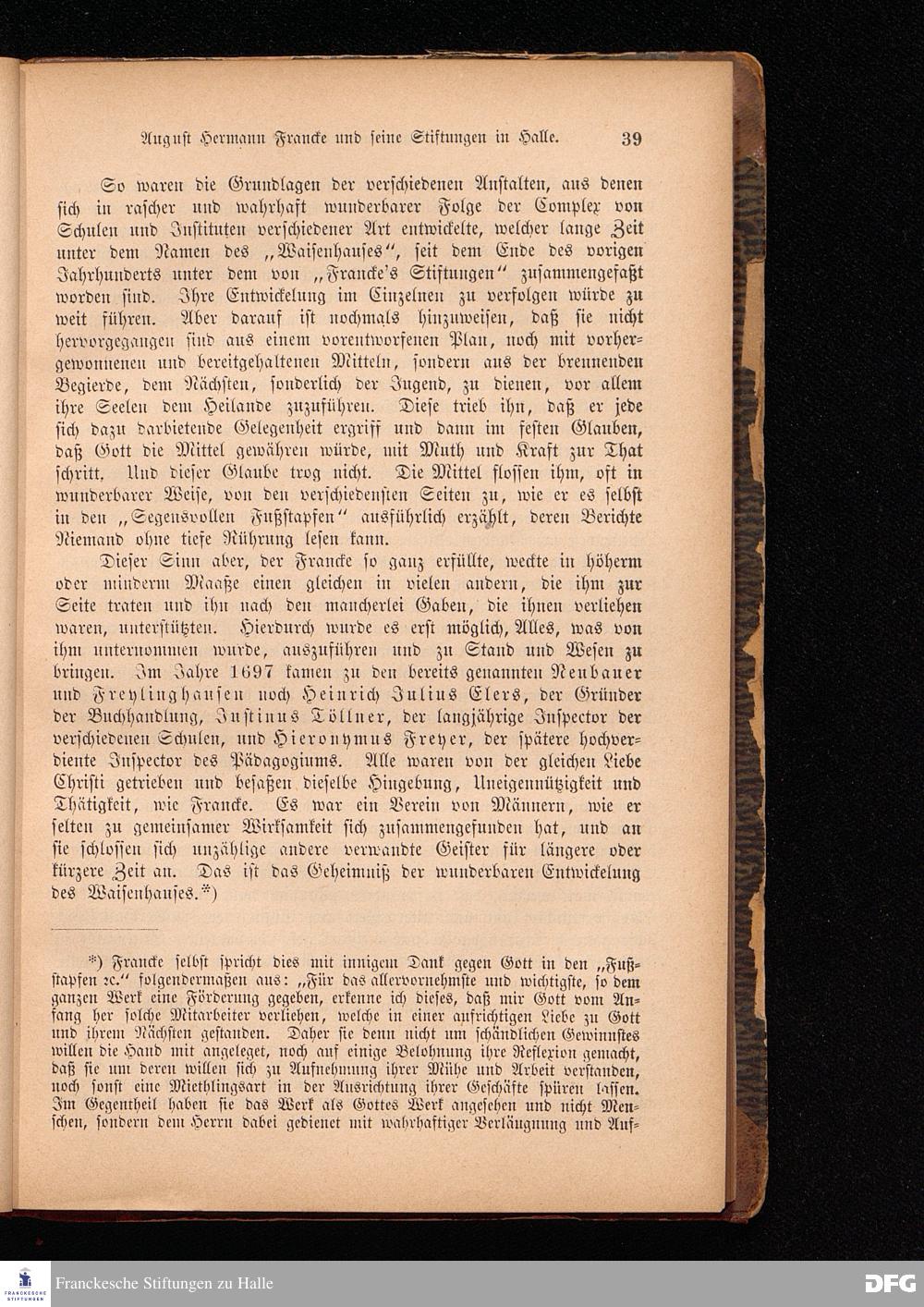 A.H.Francke's Pädagogische Schriften. Nebst der Darstellung seines Lebens und seiner Stiftungen herausgegeben von D. G[ustav] Kramer, Director der Franckeschen Stiftungen. Langensalza, Verlags=Comptoir von Hermann Beyer. 1876.