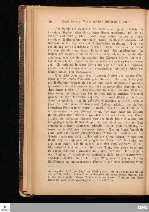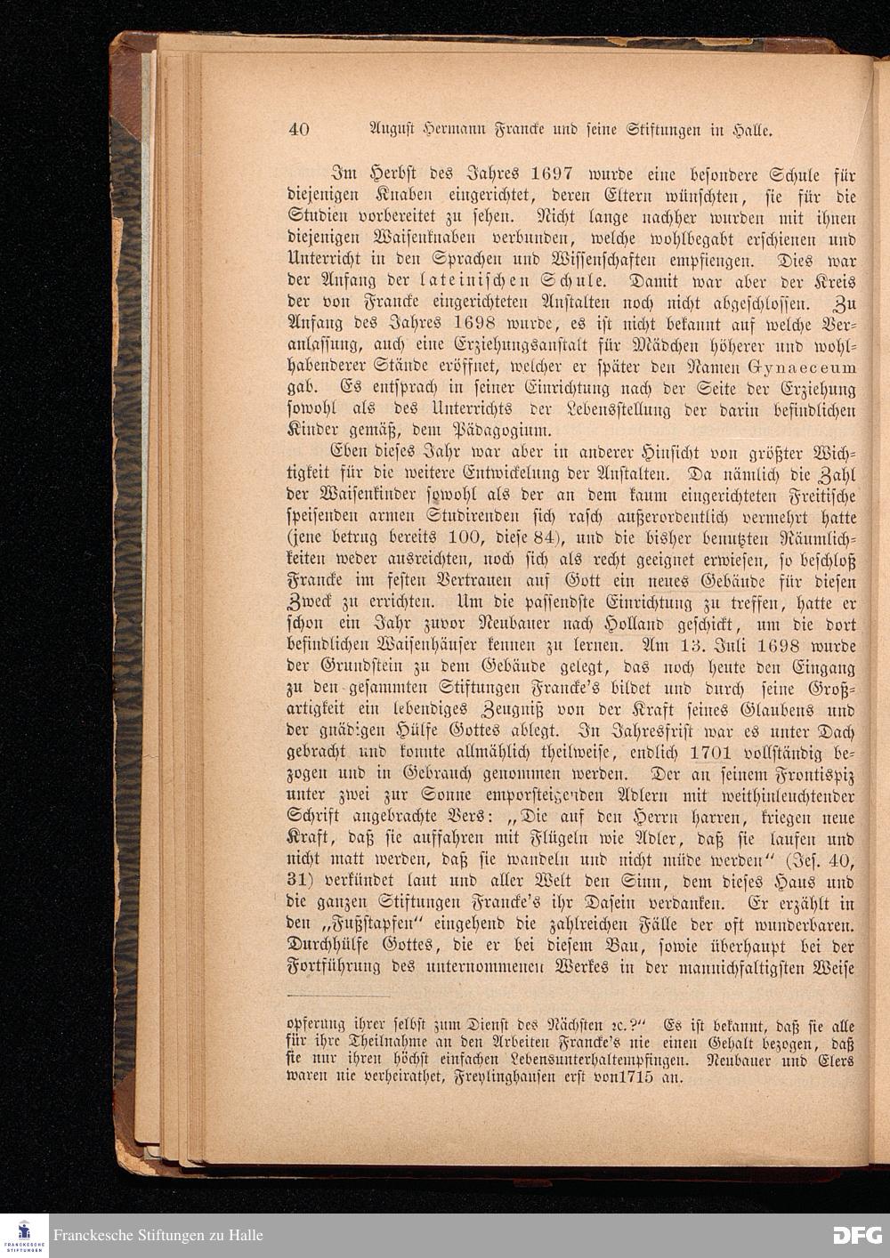 A.H.Francke's Pädagogische Schriften. Nebst der Darstellung seines Lebens und seiner Stiftungen herausgegeben von D. G[ustav] Kramer, Director der Franckeschen Stiftungen. Langensalza, Verlags=Comptoir von Hermann Beyer. 1876.