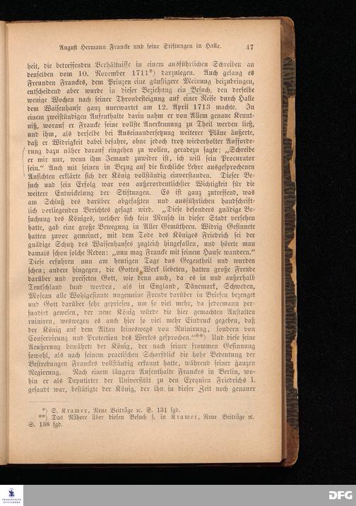 A.H.Francke's Pädagogische Schriften. Nebst der Darstellung seines Lebens und seiner Stiftungen herausgegeben von D. G[ustav] Kramer, Director der Franckeschen Stiftungen. Langensalza, Verlags=Comptoir von Hermann Beyer. 1876.
