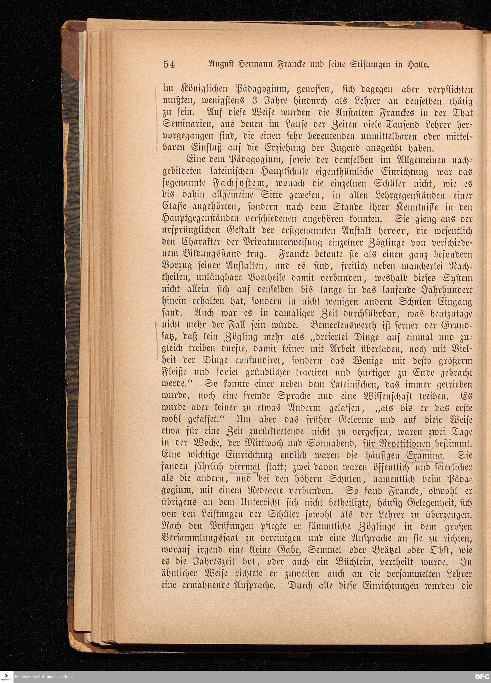 A.H.Francke's Pädagogische Schriften. Nebst der Darstellung seines Lebens und seiner Stiftungen herausgegeben von D. G[ustav] Kramer, Director der Franckeschen Stiftungen. Langensalza, Verlags=Comptoir von Hermann Beyer. 1876.