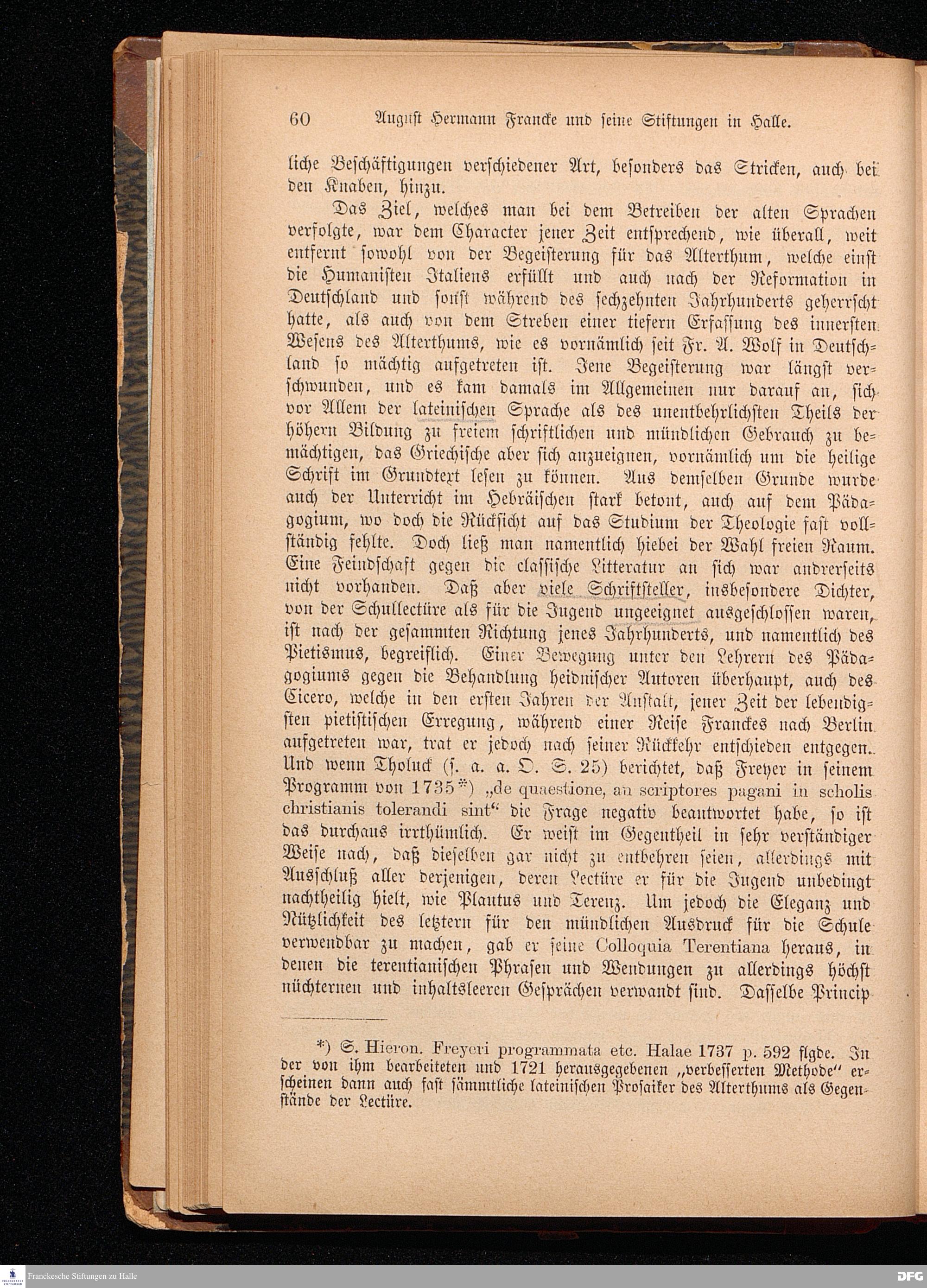 A.H.Francke's Pädagogische Schriften. Nebst der Darstellung seines Lebens und seiner Stiftungen herausgegeben von D. G[ustav] Kramer, Director der Franckeschen Stiftungen. Langensalza, Verlags=Comptoir von Hermann Beyer. 1876.