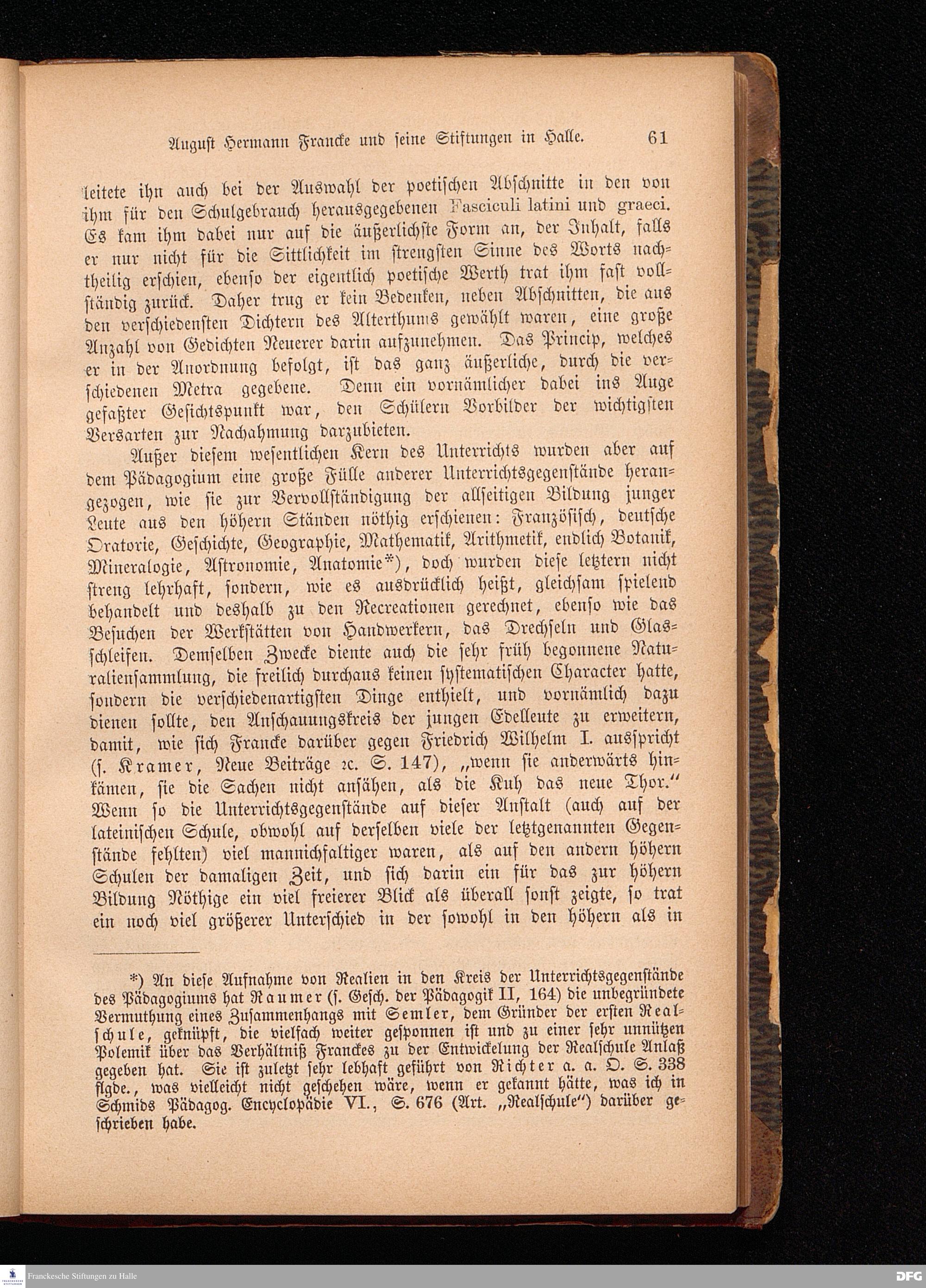 A.H.Francke's Pädagogische Schriften. Nebst der Darstellung seines Lebens und seiner Stiftungen herausgegeben von D. G[ustav] Kramer, Director der Franckeschen Stiftungen. Langensalza, Verlags=Comptoir von Hermann Beyer. 1876.