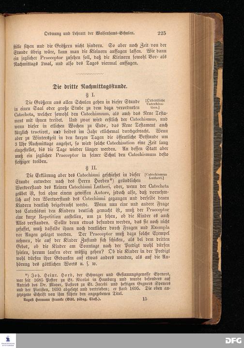 A.H.Francke's Pädagogische Schriften. Nebst der Darstellung seines Lebens und seiner Stiftungen herausgegeben von D. G[ustav] Kramer, Director der Franckeschen Stiftungen. Langensalza, Verlags=Comptoir von Hermann Beyer. 1876.