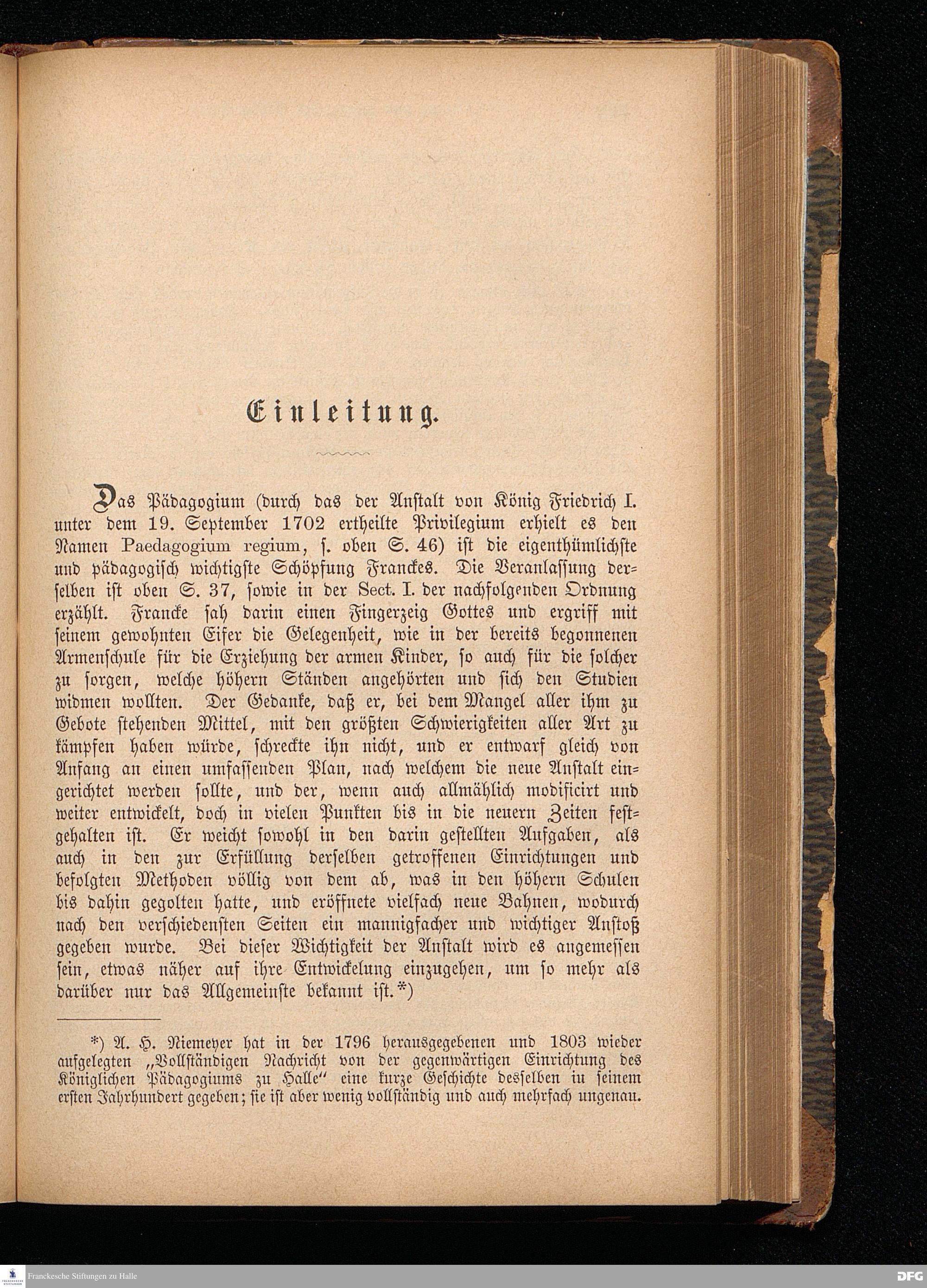 A.H.Francke's Pädagogische Schriften. Nebst der Darstellung seines Lebens und seiner Stiftungen herausgegeben von D. G[ustav] Kramer, Director der Franckeschen Stiftungen. Langensalza, Verlags=Comptoir von Hermann Beyer. 1876.