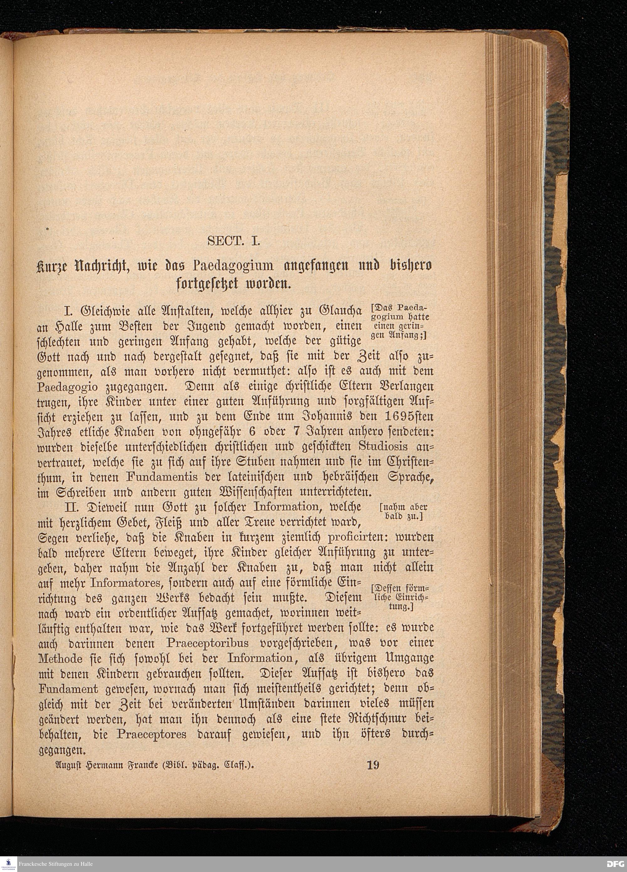 A.H.Francke's Pädagogische Schriften. Nebst der Darstellung seines Lebens und seiner Stiftungen herausgegeben von D. G[ustav] Kramer, Director der Franckeschen Stiftungen. Langensalza, Verlags=Comptoir von Hermann Beyer. 1876.