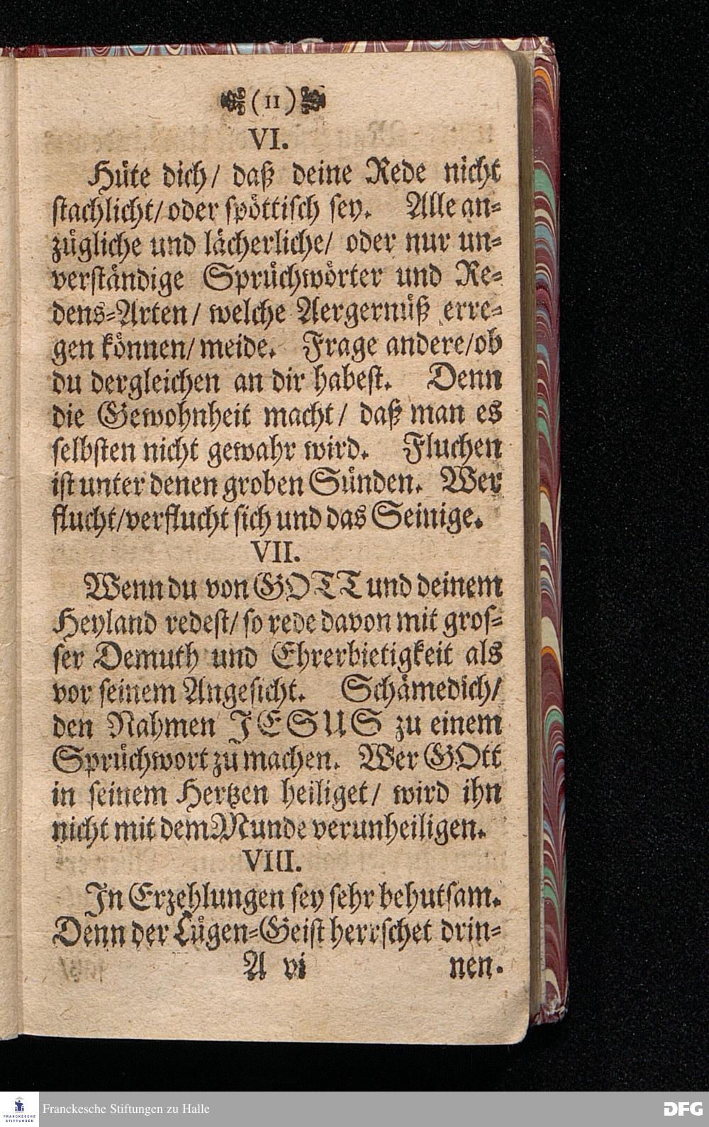 M.August Hermann Franckens Gr.& Or.Lingg.P.P.& P.Glauch. Schrifftmäßige Lebens=Reglen / Wie man so wohl bey als ausser der Gesellschafft die Liebe und Freundligkeit gegen den Nechsten / und Freudigkeit eines guten Gewissens für GOTT bewahren / und im Christenthum zunehmen soll. LEIPZIG / Bey Johann Heinichens seel.Wittib. 1695.
