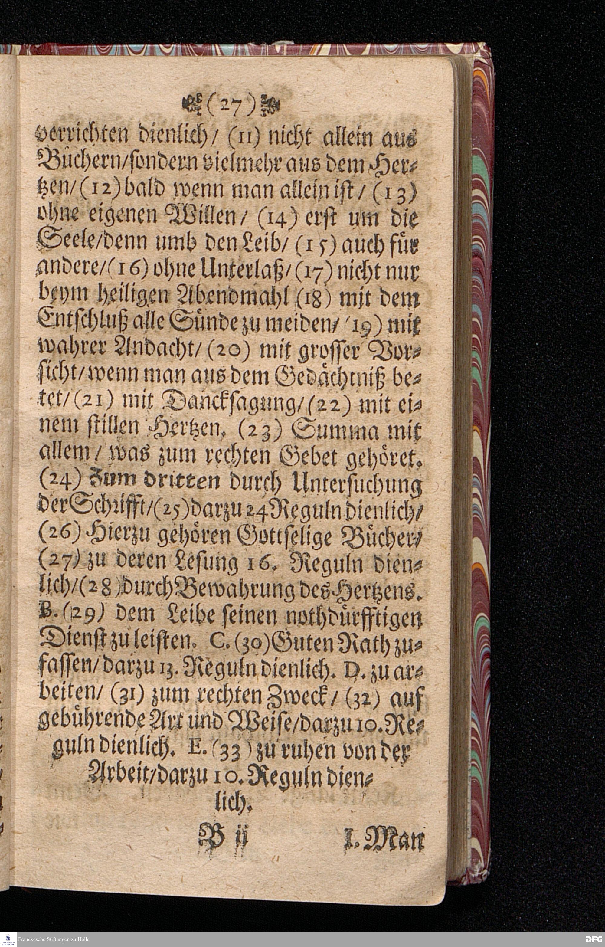 M.August Hermann Franckens Gr.& Or.Lingg.P.P.& P.Glauch. Schrifftmäßige Lebens=Reglen / Wie man so wohl bey als ausser der Gesellschafft die Liebe und Freundligkeit gegen den Nechsten / und Freudigkeit eines guten Gewissens für GOTT bewahren / und im Christenthum zunehmen soll. LEIPZIG / Bey Johann Heinichens seel.Wittib. 1695.
