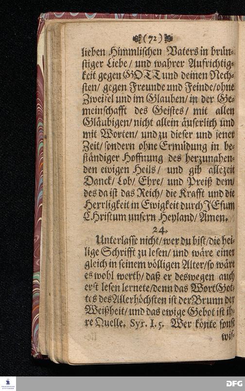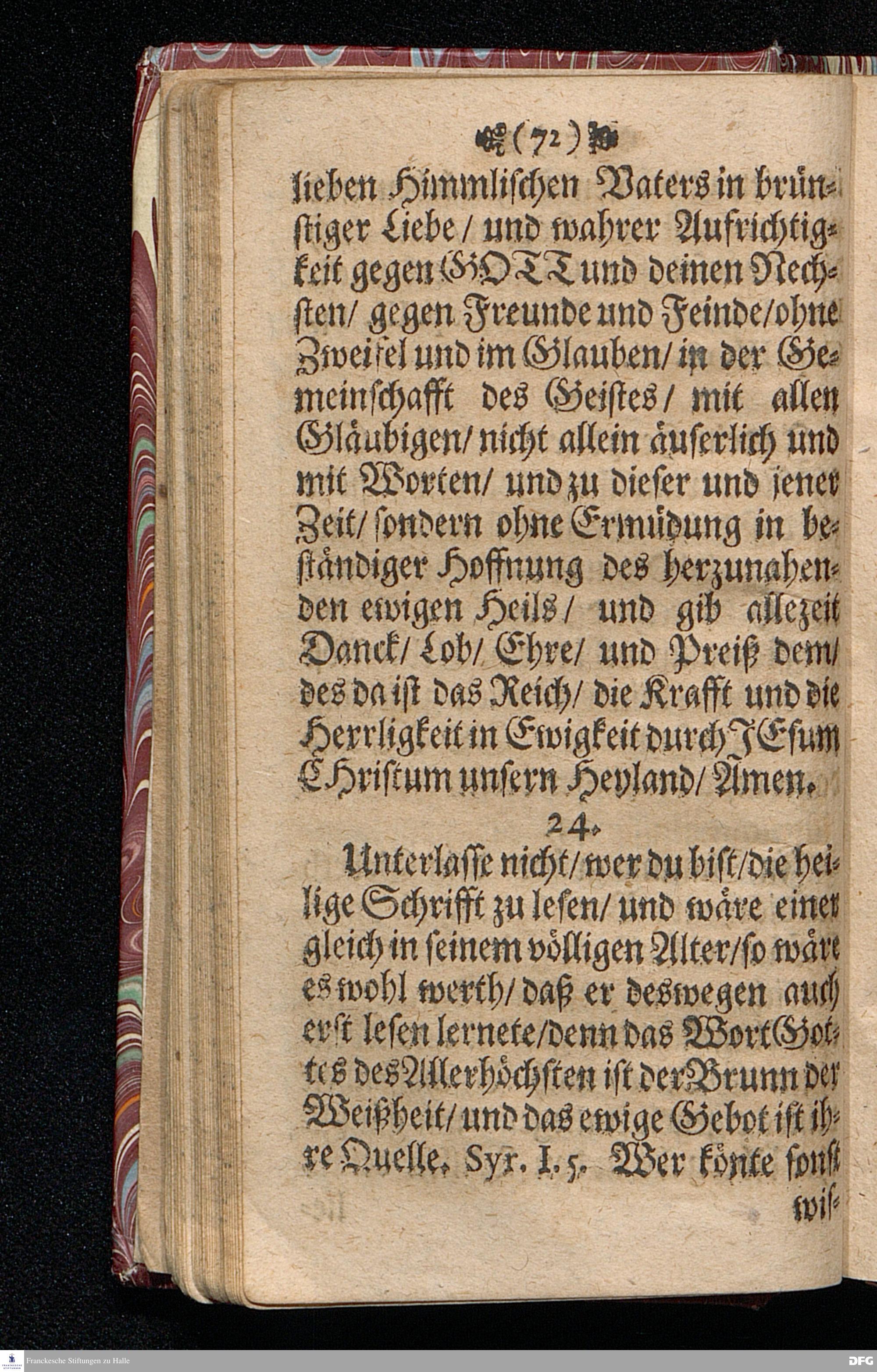 M.August Hermann Franckens Gr.& Or.Lingg.P.P.& P.Glauch. Schrifftmäßige Lebens=Reglen / Wie man so wohl bey als ausser der Gesellschafft die Liebe und Freundligkeit gegen den Nechsten / und Freudigkeit eines guten Gewissens für GOTT bewahren / und im Christenthum zunehmen soll. LEIPZIG / Bey Johann Heinichens seel.Wittib. 1695.