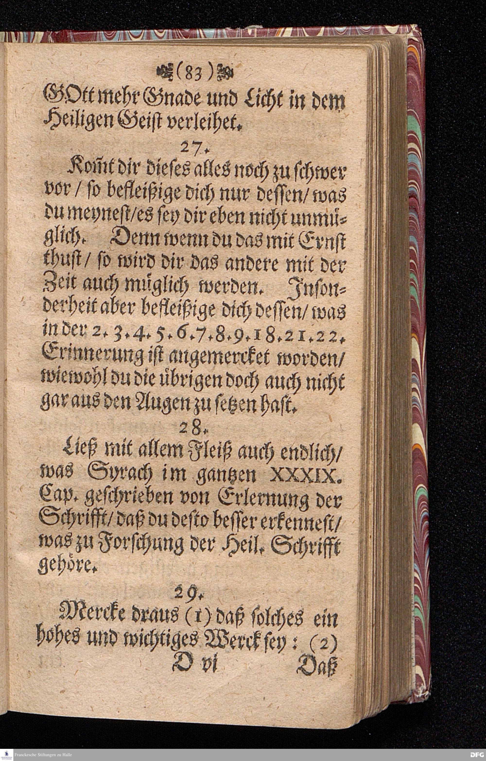 M.August Hermann Franckens Gr.& Or.Lingg.P.P.& P.Glauch. Schrifftmäßige Lebens=Reglen / Wie man so wohl bey als ausser der Gesellschafft die Liebe und Freundligkeit gegen den Nechsten / und Freudigkeit eines guten Gewissens für GOTT bewahren / und im Christenthum zunehmen soll. LEIPZIG / Bey Johann Heinichens seel.Wittib. 1695.
