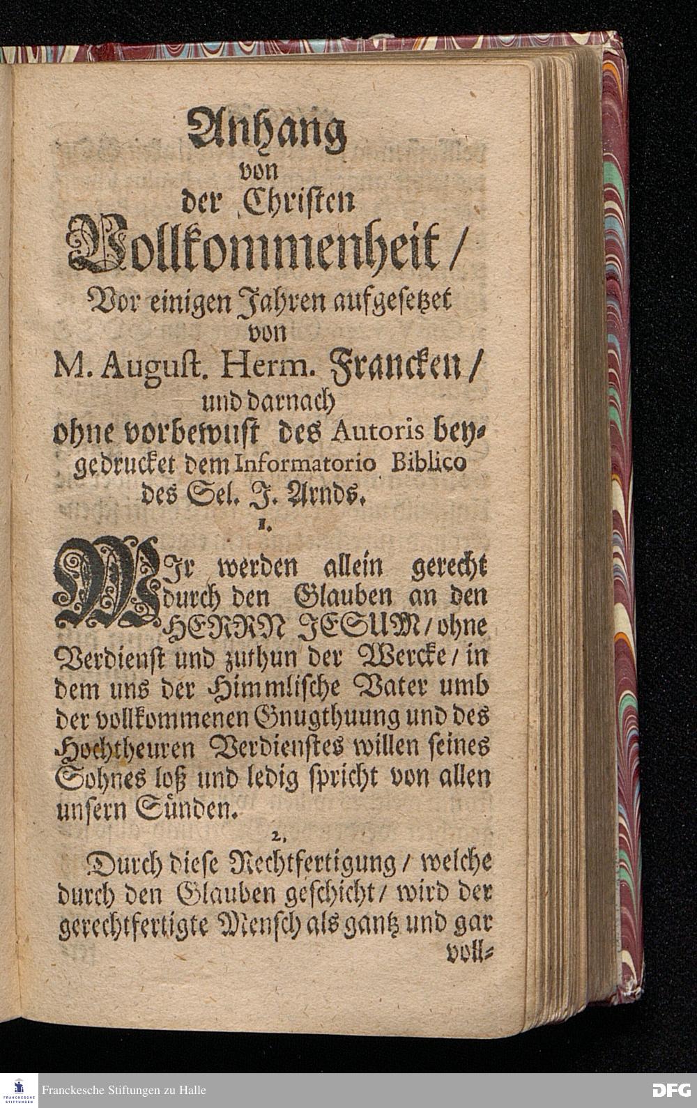 M.August Hermann Franckens Gr.& Or.Lingg.P.P.& P.Glauch. Schrifftmäßige Lebens=Reglen / Wie man so wohl bey als ausser der Gesellschafft die Liebe und Freundligkeit gegen den Nechsten / und Freudigkeit eines guten Gewissens für GOTT bewahren / und im Christenthum zunehmen soll. LEIPZIG / Bey Johann Heinichens seel.Wittib. 1695.