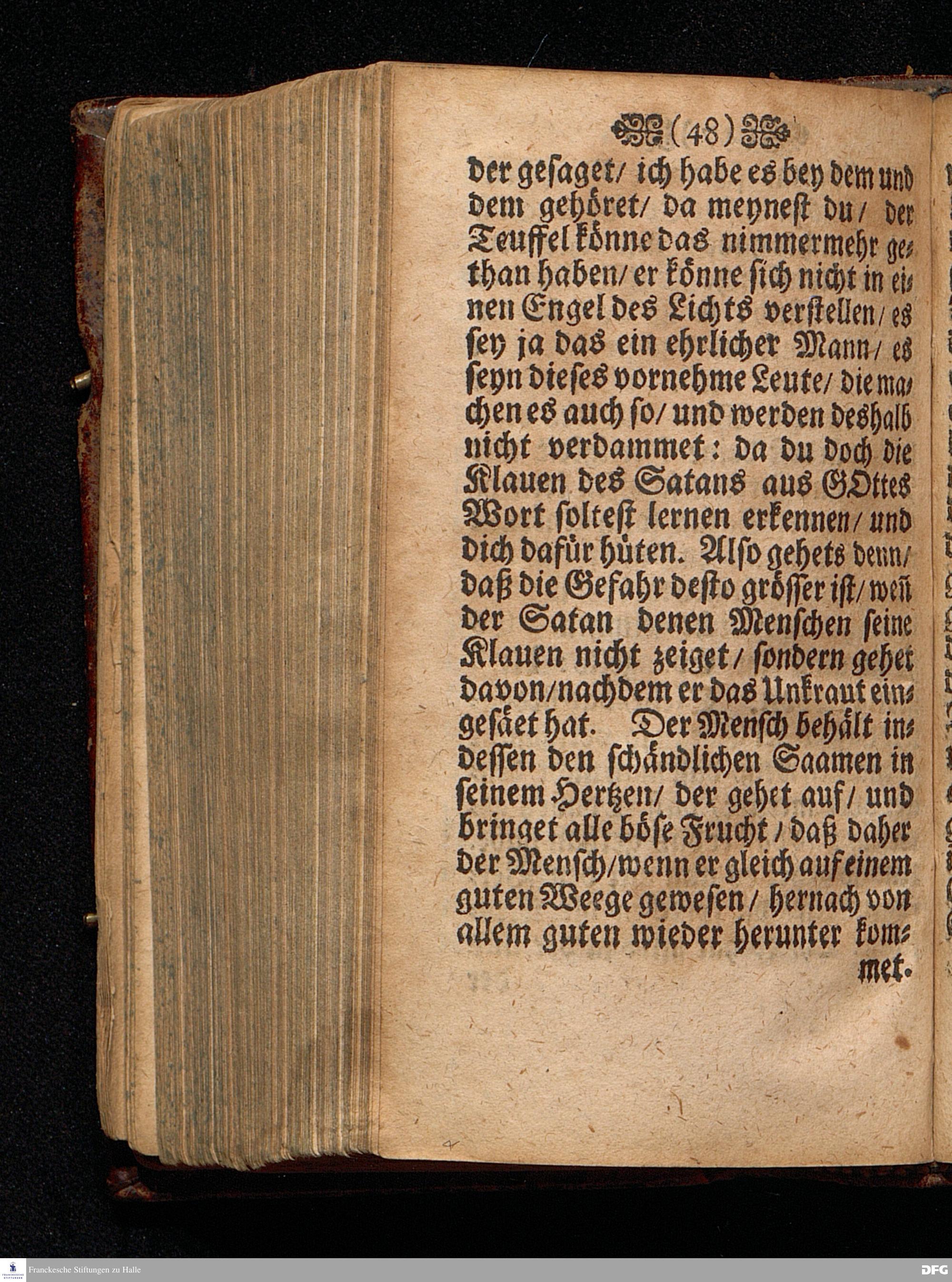 Die Gefährlichkeit des Schlaffs der Sicherheit / Am V.Sonntag nach Epiphan. ANNO 1698 In einer Predigt Aus dem Evangelio Matth.XIII. v.24--30. In der St.Georgen=Kirche zu Glaucha an Halle vorgestellet / von August Hermann Francken / S.S.Theol.Profess.P.Ordin.& Past.Glauch. HALLE / Druckts Christian Henckel / Univ.Buchdrucker.