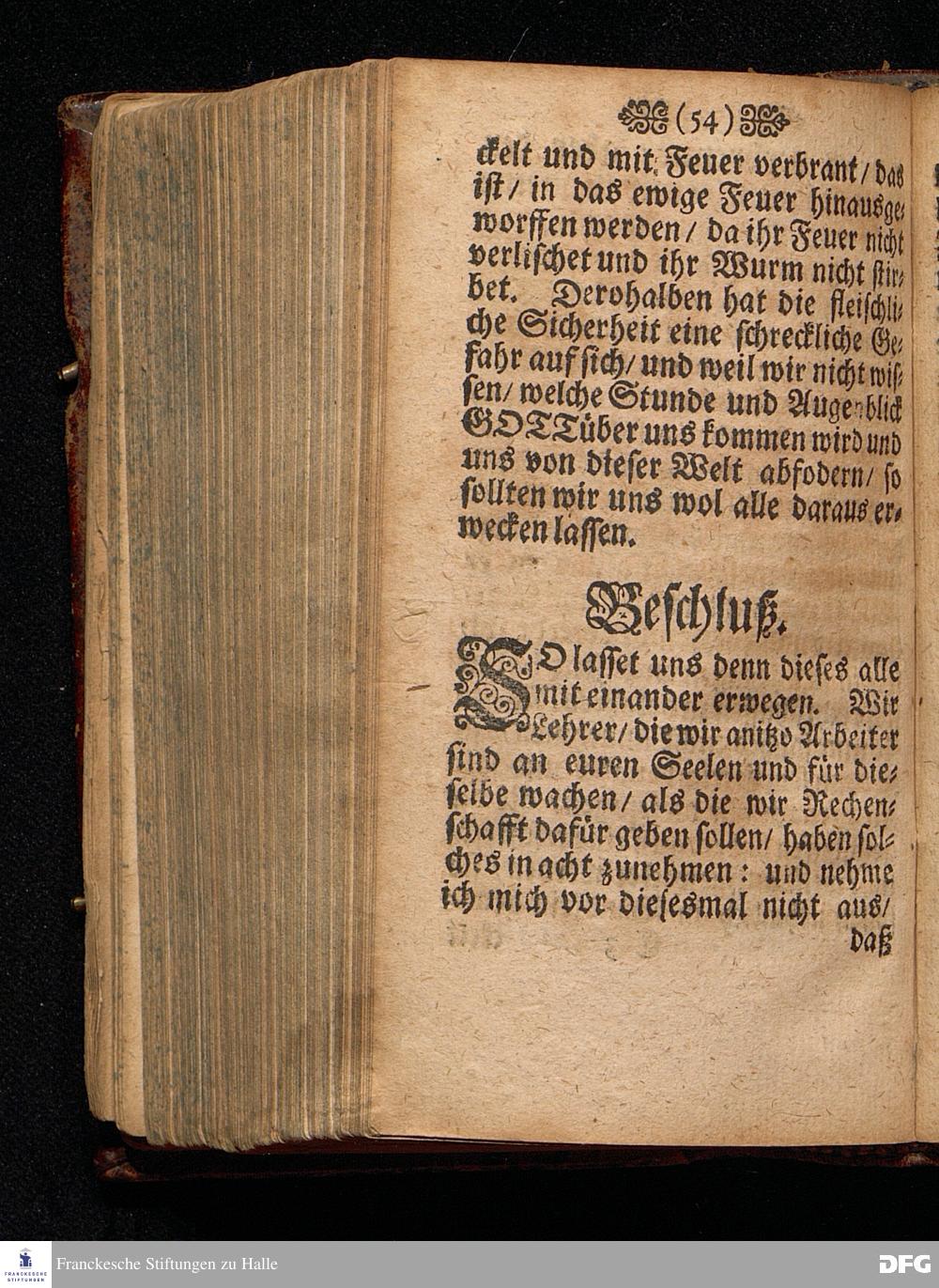 Die Gefährlichkeit des Schlaffs der Sicherheit / Am V.Sonntag nach Epiphan. ANNO 1698 In einer Predigt Aus dem Evangelio Matth.XIII. v.24--30. In der St.Georgen=Kirche zu Glaucha an Halle vorgestellet / von August Hermann Francken / S.S.Theol.Profess.P.Ordin.& Past.Glauch. HALLE / Druckts Christian Henckel / Univ.Buchdrucker.