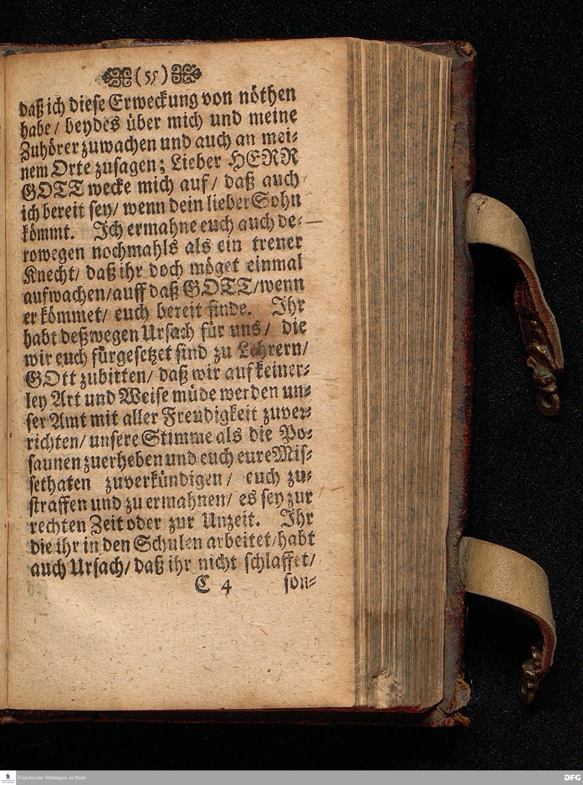 Die Gefährlichkeit des Schlaffs der Sicherheit / Am V.Sonntag nach Epiphan. ANNO 1698 In einer Predigt Aus dem Evangelio Matth.XIII. v.24--30. In der St.Georgen=Kirche zu Glaucha an Halle vorgestellet / von August Hermann Francken / S.S.Theol.Profess.P.Ordin.& Past.Glauch. HALLE / Druckts Christian Henckel / Univ.Buchdrucker.