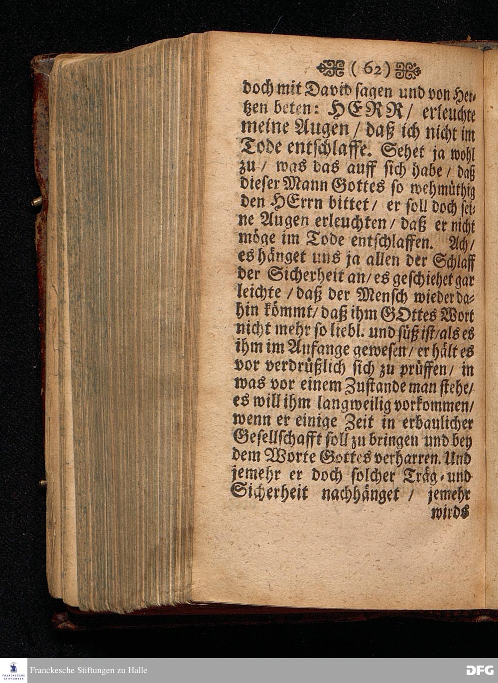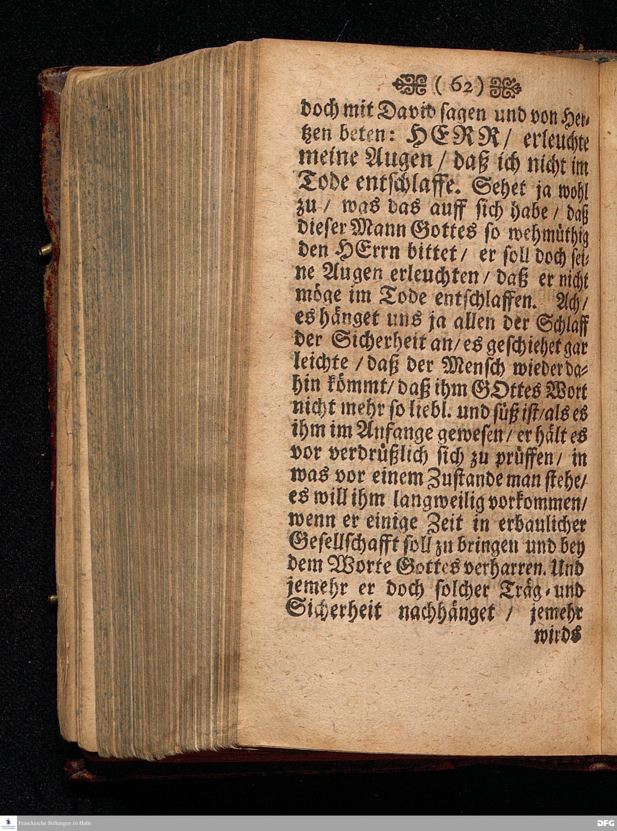 Die Gefährlichkeit des Schlaffs der Sicherheit / Am V.Sonntag nach Epiphan. ANNO 1698 In einer Predigt Aus dem Evangelio Matth.XIII. v.24--30. In der St.Georgen=Kirche zu Glaucha an Halle vorgestellet / von August Hermann Francken / S.S.Theol.Profess.P.Ordin.& Past.Glauch. HALLE / Druckts Christian Henckel / Univ.Buchdrucker.