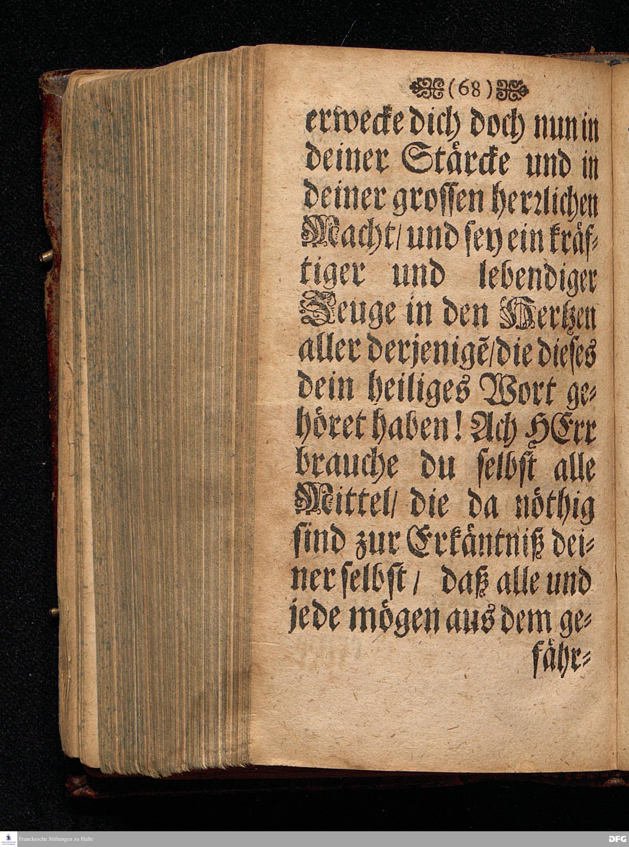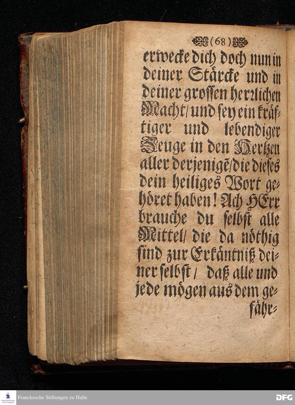 Die Gefährlichkeit des Schlaffs der Sicherheit / Am V.Sonntag nach Epiphan. ANNO 1698 In einer Predigt Aus dem Evangelio Matth.XIII. v.24--30. In der St.Georgen=Kirche zu Glaucha an Halle vorgestellet / von August Hermann Francken / S.S.Theol.Profess.P.Ordin.& Past.Glauch. HALLE / Druckts Christian Henckel / Univ.Buchdrucker.