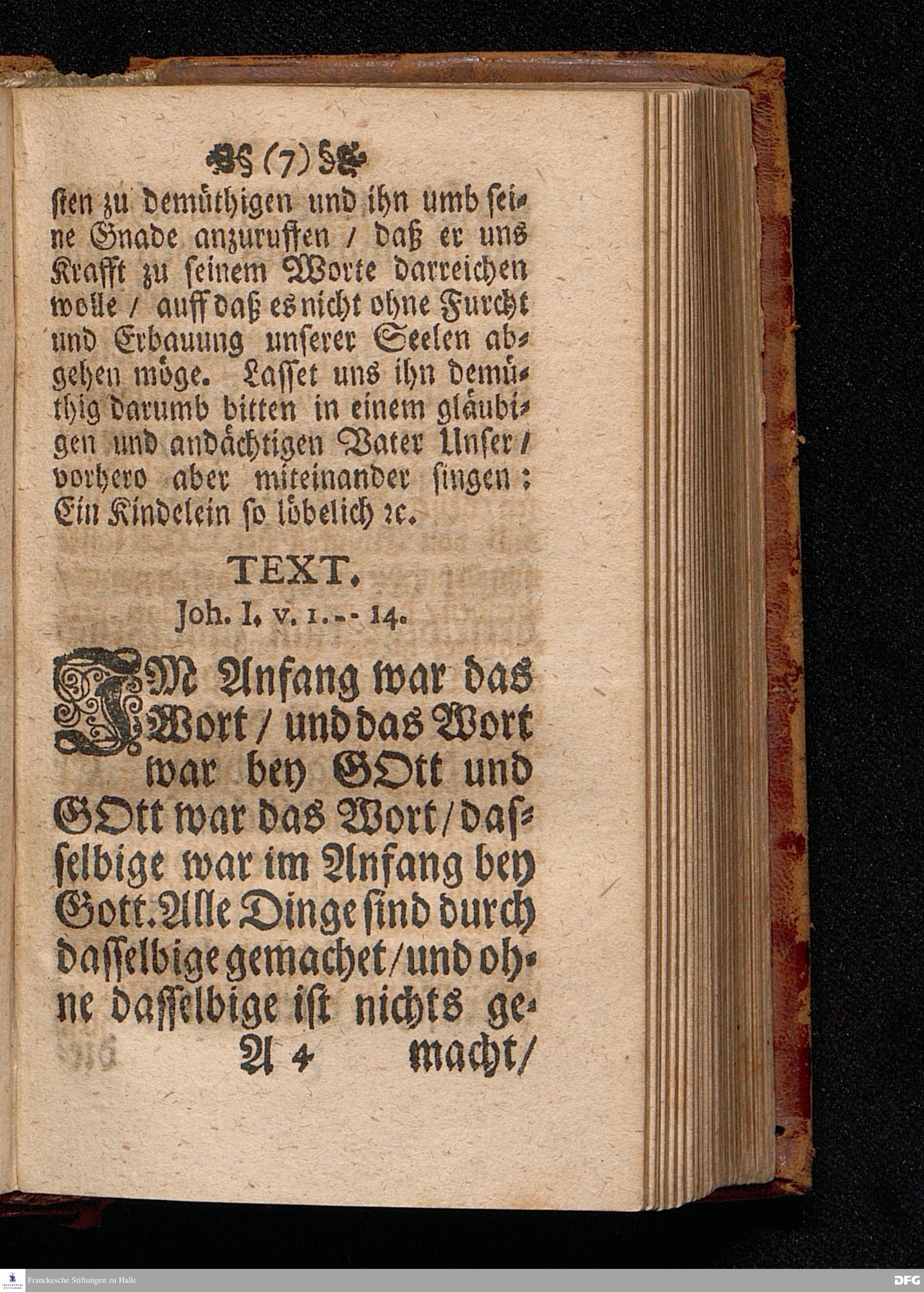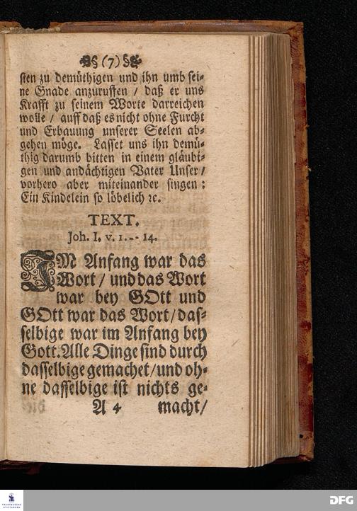 Das Kündlich=grosse Geheimniß Der Gottseeligkeit / Am dritten Weyhenacht=Feyertage ANNO 1698. In einer Predigt Uber das Evangelium Joh.I, 1--14. In der St. Georgen=Kirche zu Glaucha an Halle / vorgestellet von M.August Hermann Francken / S.S.Theol.P.P.Ord.& P.Glauch. HALLE / Gedruckt bey Christoph Salfelden / Königl.Preuß.Hoff-u.Reg.Buchd. 1702