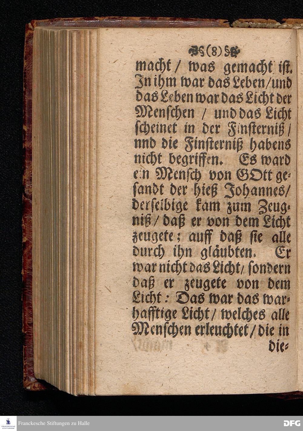 Das Kündlich=grosse Geheimniß Der Gottseeligkeit / Am dritten Weyhenacht=Feyertage ANNO 1698. In einer Predigt Uber das Evangelium Joh.I, 1--14. In der St. Georgen=Kirche zu Glaucha an Halle / vorgestellet von M.August Hermann Francken / S.S.Theol.P.P.Ord.& P.Glauch. HALLE / Gedruckt bey Christoph Salfelden / Königl.Preuß.Hoff-u.Reg.Buchd. 1702