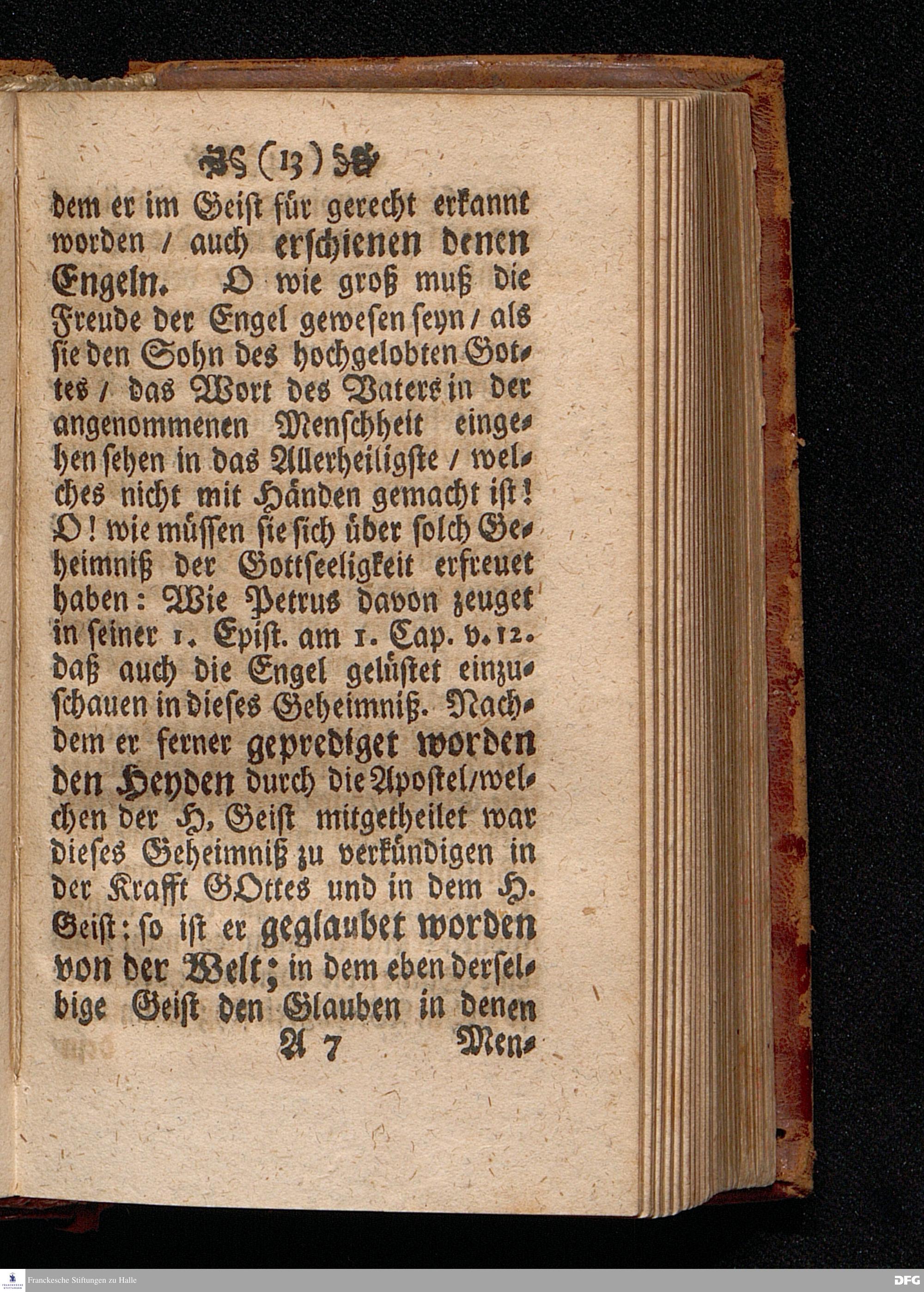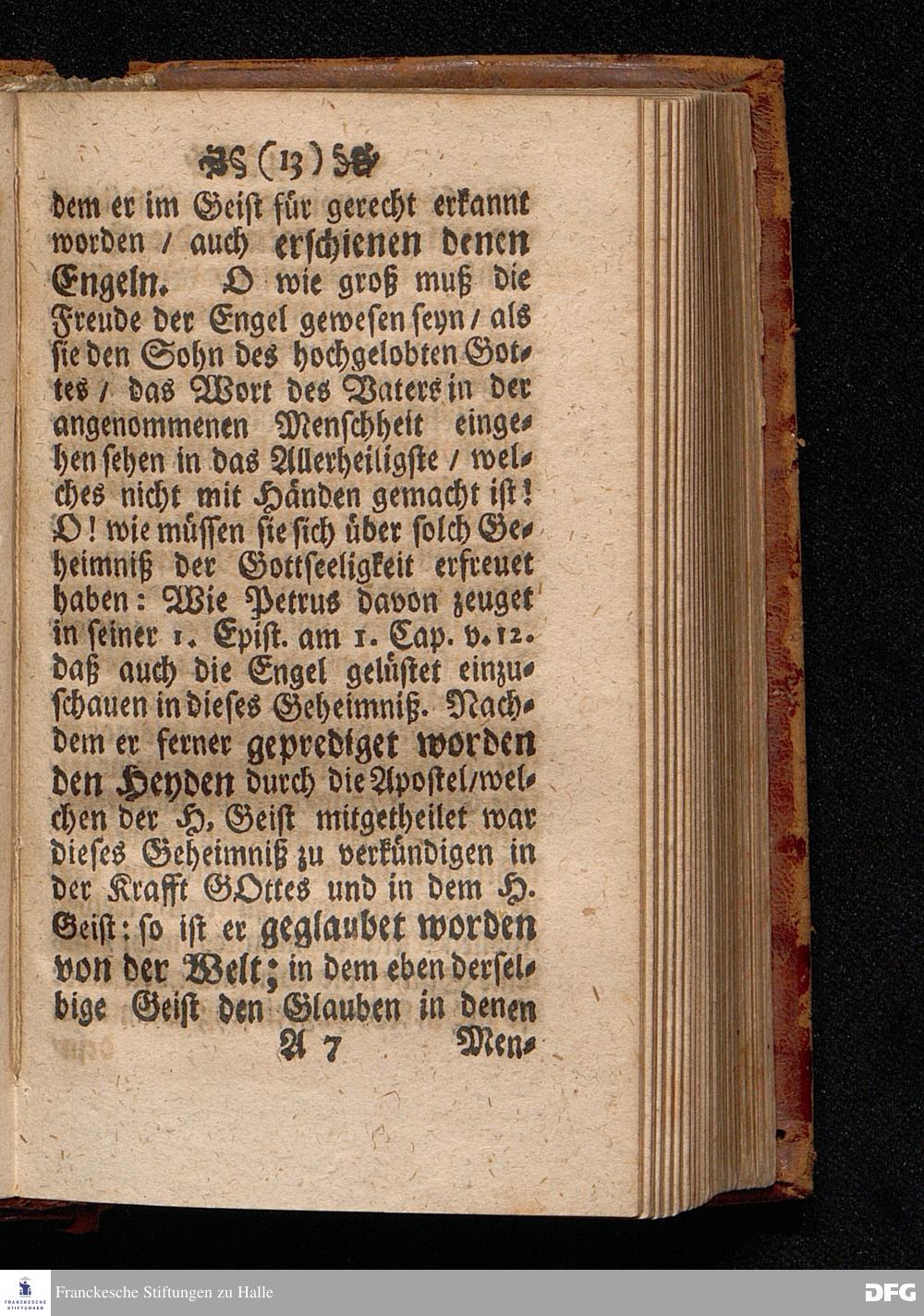 Das Kündlich=grosse Geheimniß Der Gottseeligkeit / Am dritten Weyhenacht=Feyertage ANNO 1698. In einer Predigt Uber das Evangelium Joh.I, 1--14. In der St. Georgen=Kirche zu Glaucha an Halle / vorgestellet von M.August Hermann Francken / S.S.Theol.P.P.Ord.& P.Glauch. HALLE / Gedruckt bey Christoph Salfelden / Königl.Preuß.Hoff-u.Reg.Buchd. 1702