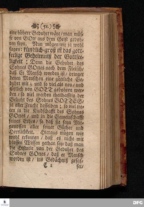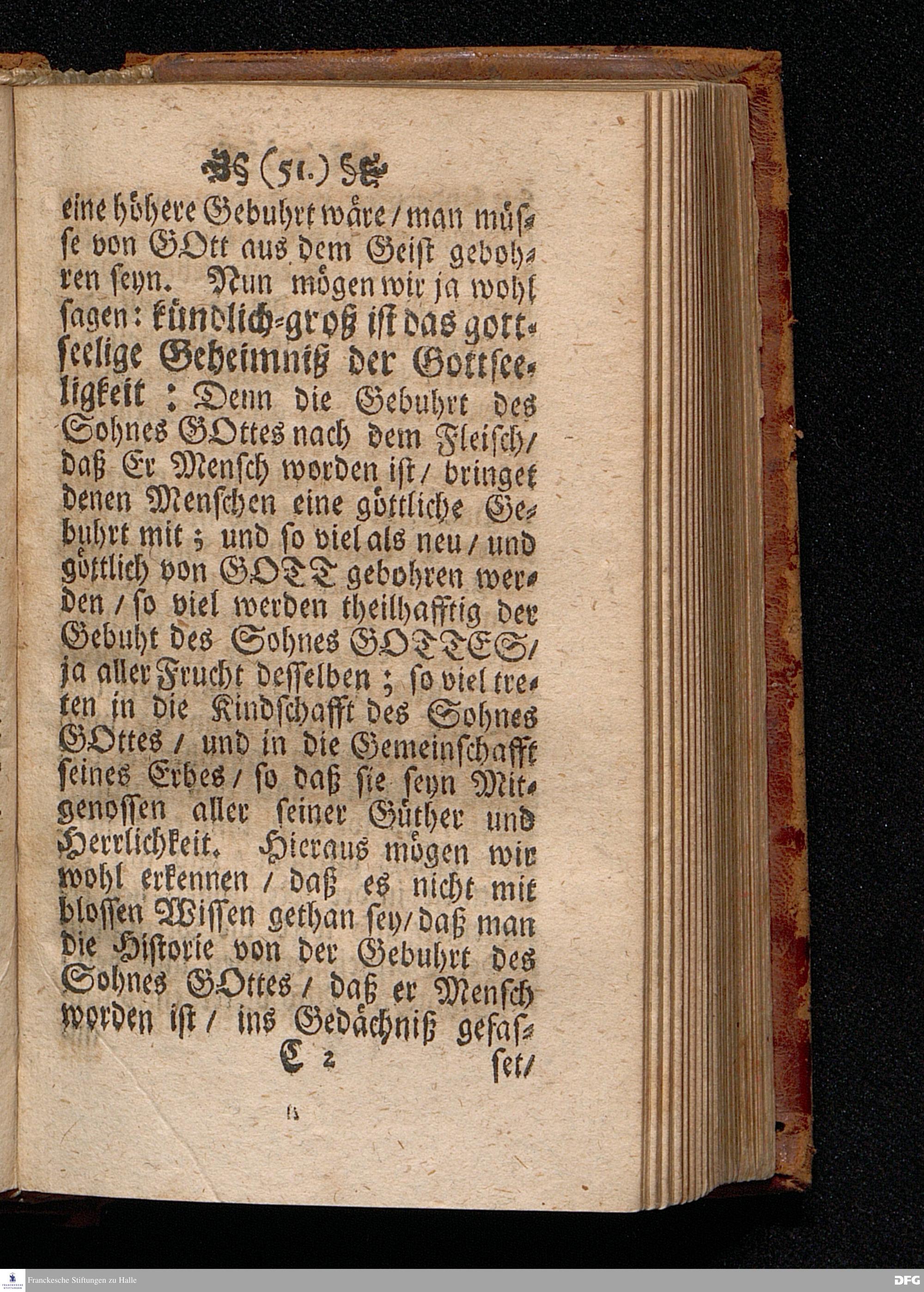 Das Kündlich=grosse Geheimniß Der Gottseeligkeit / Am dritten Weyhenacht=Feyertage ANNO 1698. In einer Predigt Uber das Evangelium Joh.I, 1--14. In der St. Georgen=Kirche zu Glaucha an Halle / vorgestellet von M.August Hermann Francken / S.S.Theol.P.P.Ord.& P.Glauch. HALLE / Gedruckt bey Christoph Salfelden / Königl.Preuß.Hoff-u.Reg.Buchd. 1702