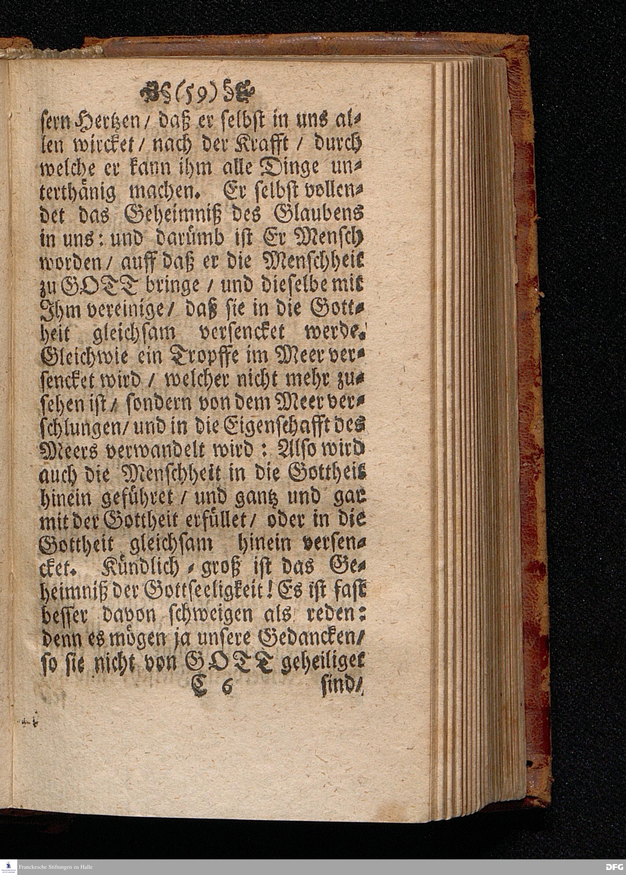 Das Kündlich=grosse Geheimniß Der Gottseeligkeit / Am dritten Weyhenacht=Feyertage ANNO 1698. In einer Predigt Uber das Evangelium Joh.I, 1--14. In der St. Georgen=Kirche zu Glaucha an Halle / vorgestellet von M.August Hermann Francken / S.S.Theol.P.P.Ord.& P.Glauch. HALLE / Gedruckt bey Christoph Salfelden / Königl.Preuß.Hoff-u.Reg.Buchd. 1702